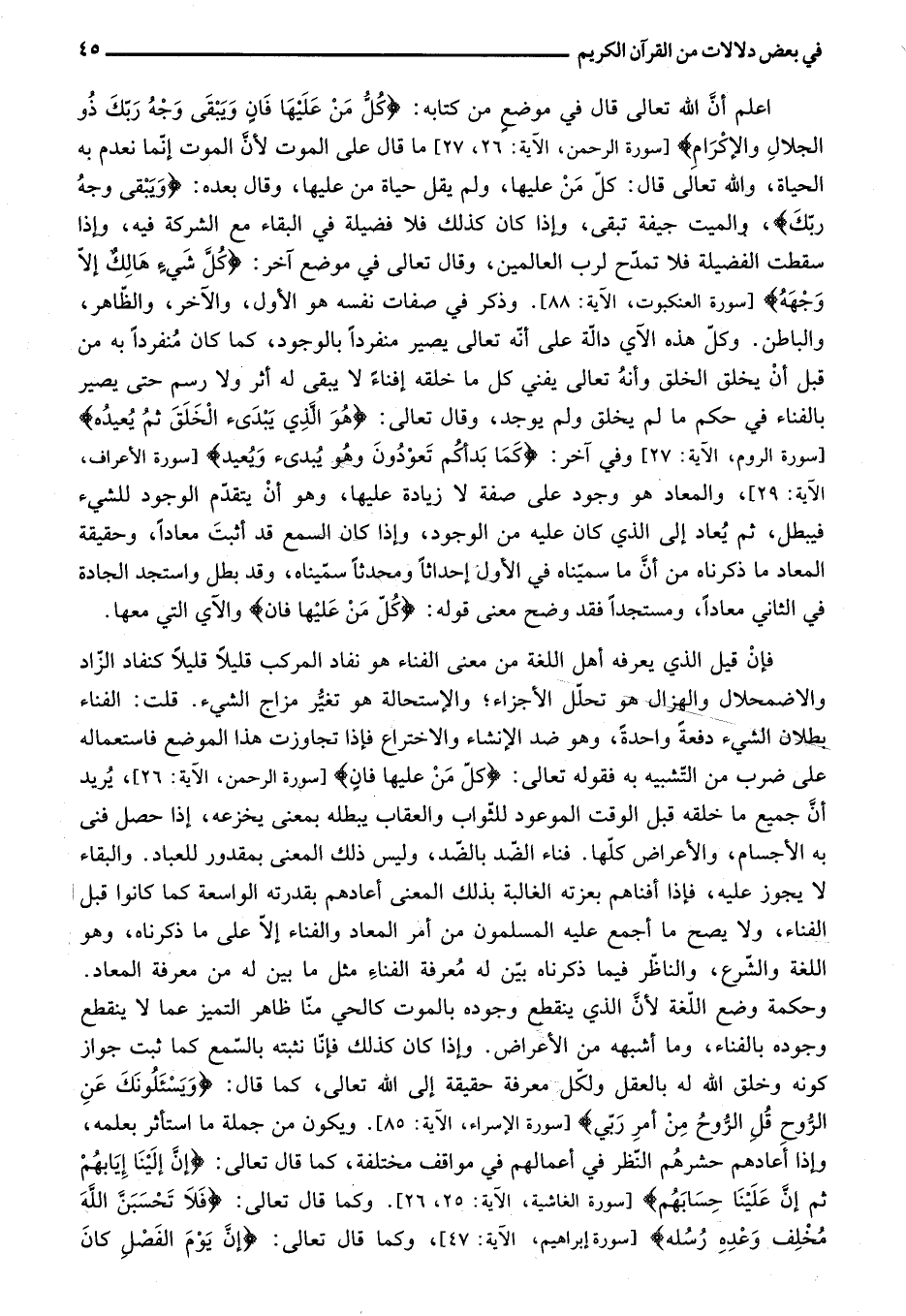 اعلم أنّ الله تعالى قال في موضع من كتابه: كُلُّ مَنْ عَلَيْها فانٍ وَيَبْقى وَجْهُ رَبِّكَ ذُو الْجَلالِ وَالْإِكْرامِ