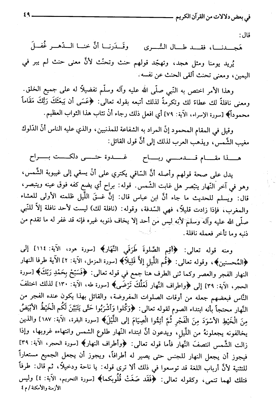 [سورة طه، الآية: 130] لذلك اختلف النّاس فبعضهم جعله من أوقات الصلوات المفروضة، والقائل بهذا يكون عنده الفجر من النّهار محتجا بأنه ابتداء الصوم لقوله تعالى: وَكُلُوا وَاشْرَبُوا حَتَّى يَتَبَيَّنَ لَكُمُ الْخَيْطُ الْأَبْيَضُ مِنَ الْخَيْطِ الْأَسْوَدِ مِنَ الْفَجْرِ ثُمَّ أَتِمُّوا الصِّيامَ إِلَى اللَّيْلِ