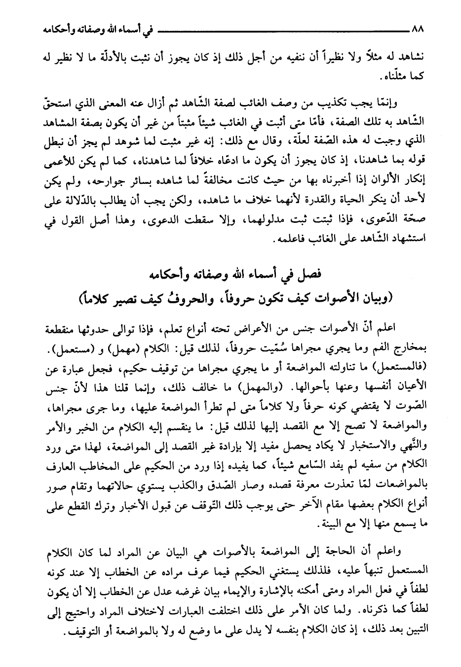 فصل في أسماء الله وصفاته وأحكامه (وبيان الأصوات كيف تكون حروفا، والحروف كيف تصير كلاما)