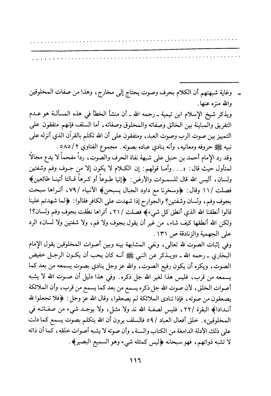 وغاية شبهتهم أن الكلام بحرف وصوت يحتاج إلى مخارج، وهذا من صفات المخلوقين، والله منزه عنها.