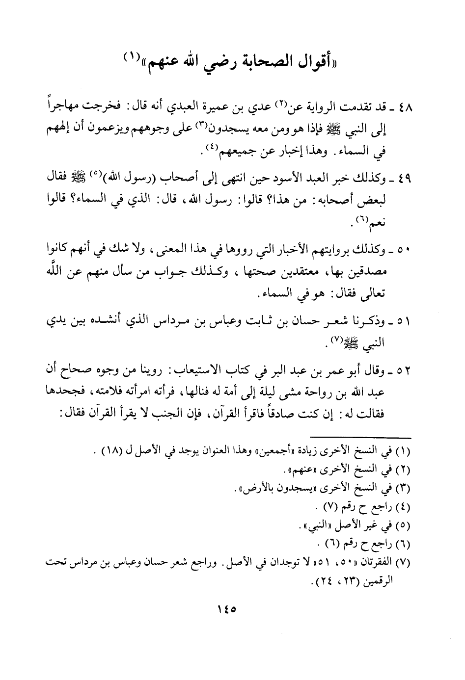 48- قَدْ تَقَدَّمَتِ الرِّوَايَةُ عَنْ (¬2) عَدِيِّ بْنِ عُمَيْرَةَ الْعَبْدِيِّ أَنَّهُ قَالَ: فَخَرَجْتُ مُهَاجِرًا إِلَى النَّبِيِّ صَلَّى اللَّهُ عَلَيْهِ وَسَلَّمَ، فَإِذَا هُوَ وَمَنْ مَعَهُ يَسْجُدُونَ (¬3) عَلَى وُجُوهِهِمْ، وَيَزْعُمُونَ أَنَّ إِلَهَهُمْ فِي السَّمَاءِ. وَهَذَا إِخْبَارٌ عَنْ جَمِيعِهِمْ (¬4) .