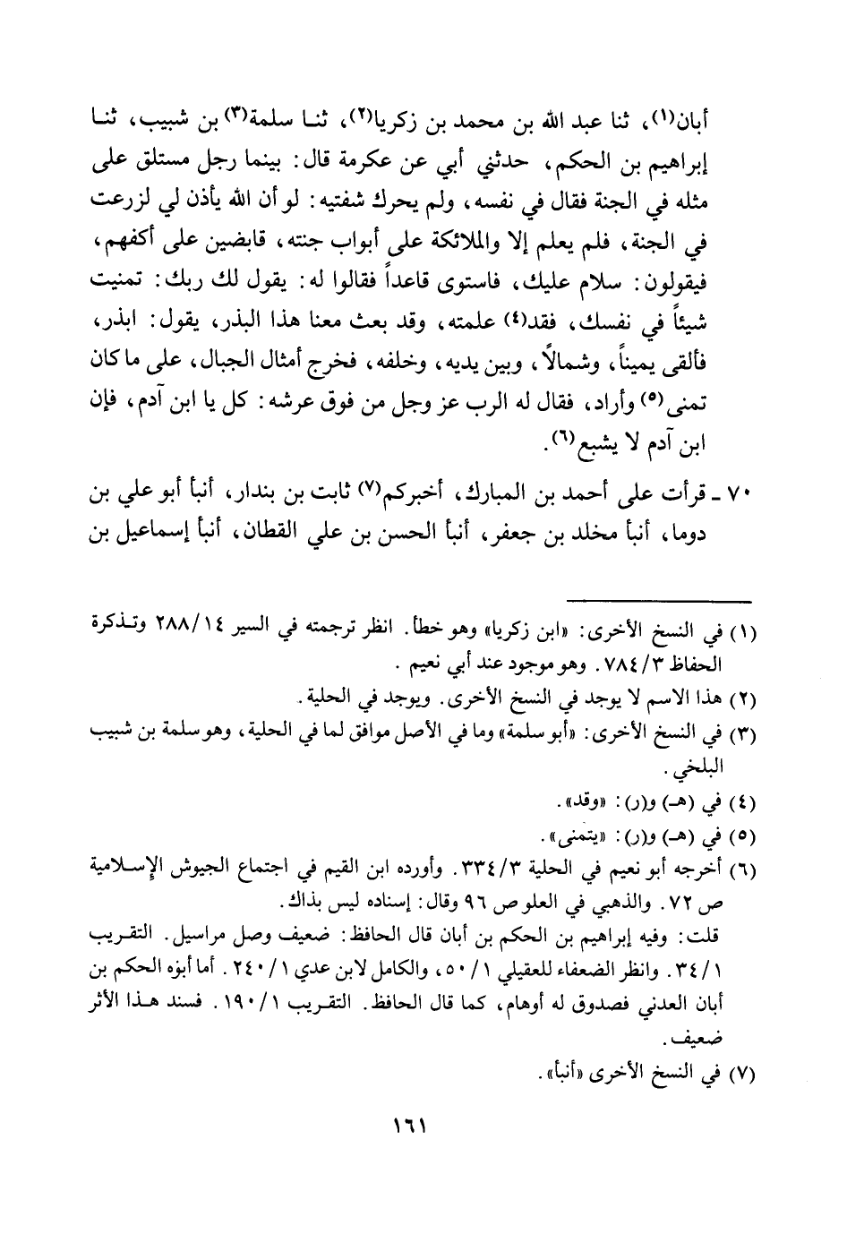 (¬6) أخرجه أبو نعيم في الحلية 3/334، وأورده ابن القيم في اجتماع الجيوش الإسلامية ص 72، والذهبي في العلو ص 96، وقال: إسناده ليس بذاك.