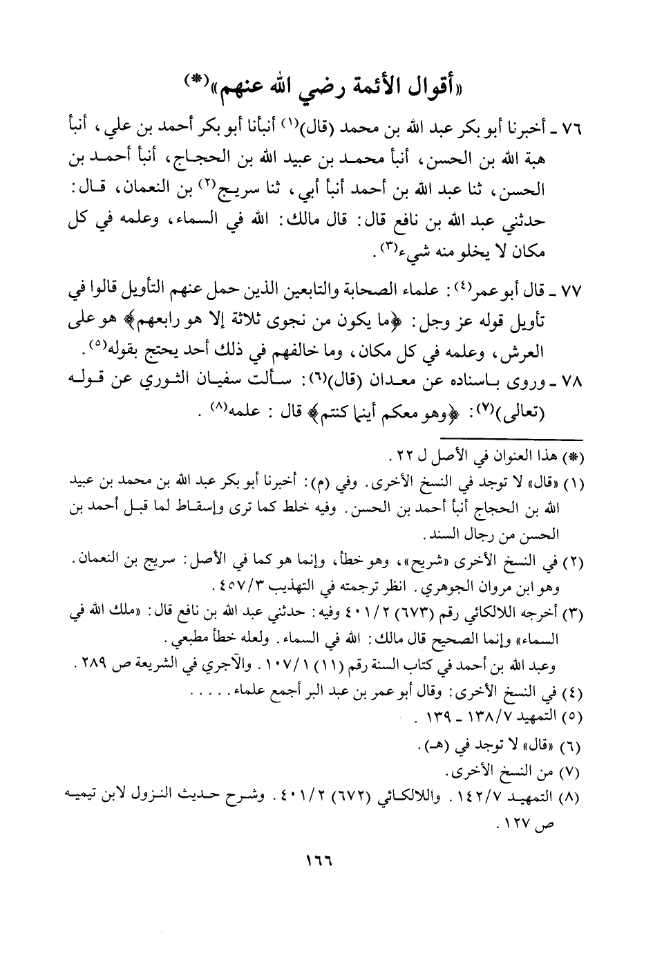 (¬10) التمهيد 7/142. واللالكائي (672) ، 2/401، وشرح حديث النزول لابن تيمية ص 127.