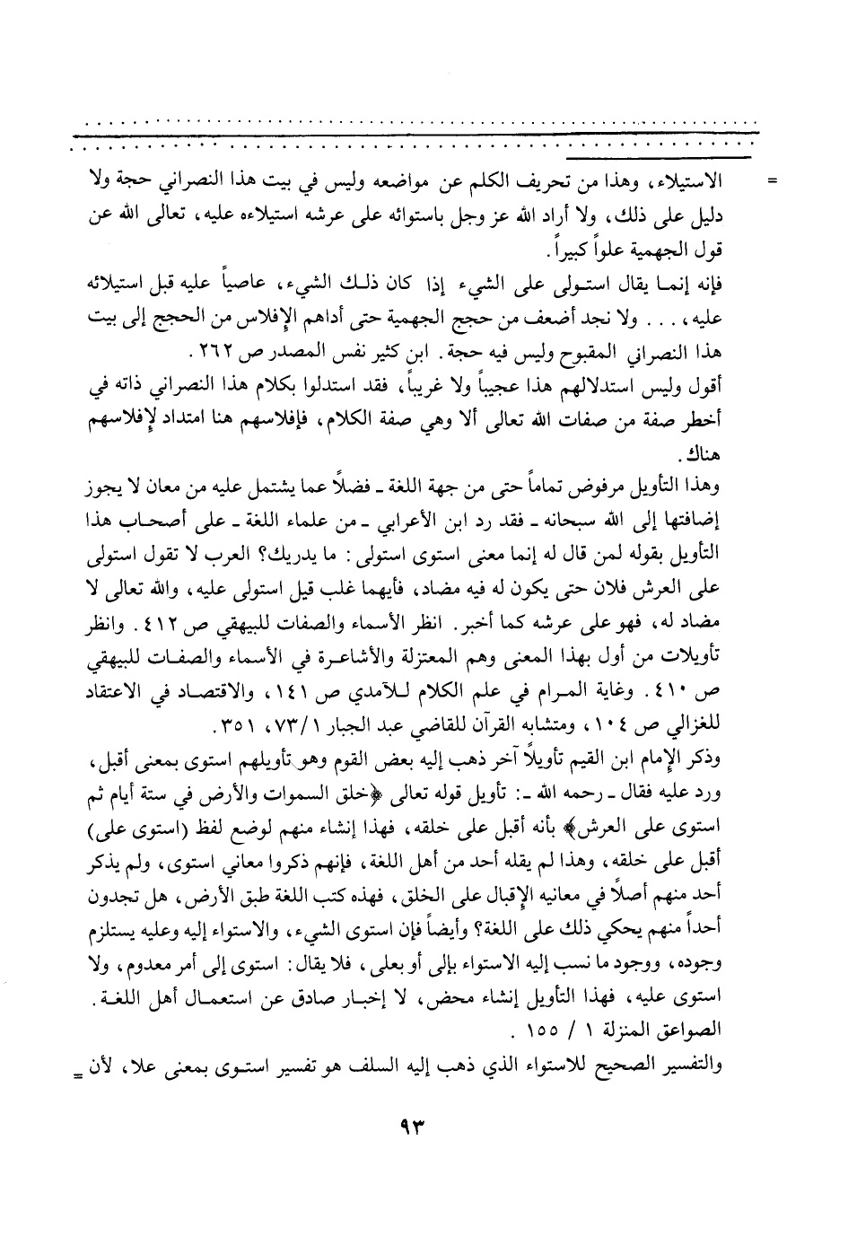فإنه إنما يقال استولى على الشيء إذا كان ذلك الشيء عاصيا عليه قبل استيلائه عليه ... ولا نجد أضعف من حجج الجهمية حتى أداهم الإفلاس من الحجج إلى بيت هذا النصراني المقبوح، وليس فيه حجة. ابن كثير نفس المصدر 9/262.