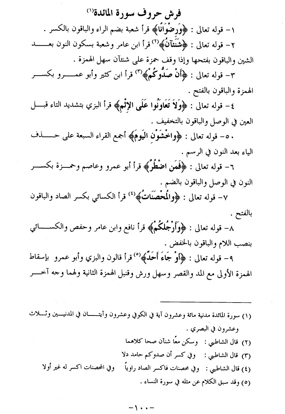 2 - قوله تعالى: شَنَآنُ (¬2) قرأ ابن عامر وشعبة بسكون النون بعد الشين والباقون بفتحها وإذا وقف حمزة على شنآن سهل الهمزة.