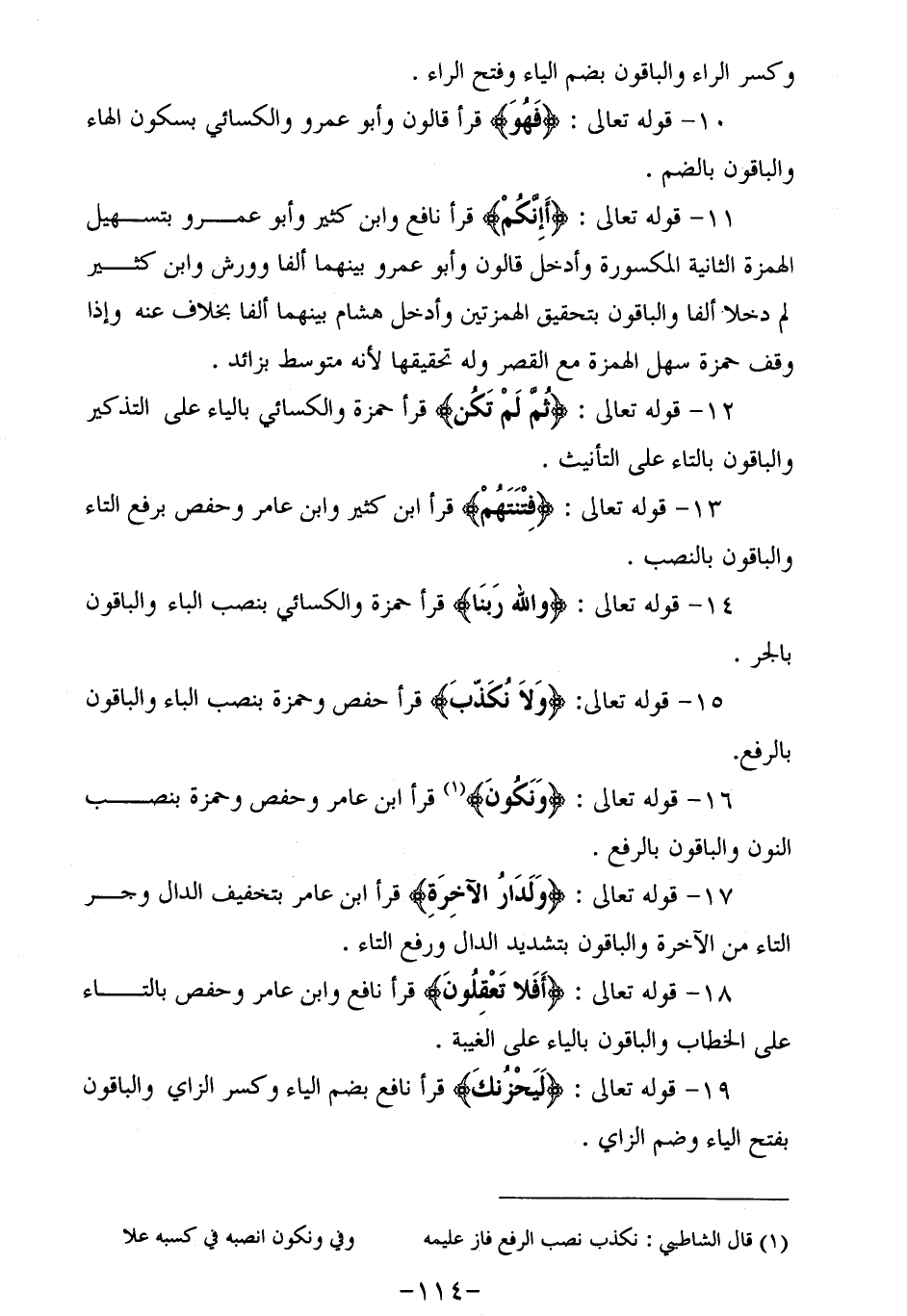 12 - قوله تعالى: ثُمَّ لَمْ تَكُنْ قرأ حمزة والكسائي بالياء على التذكير والباقون بالتاء على التّأنيث.