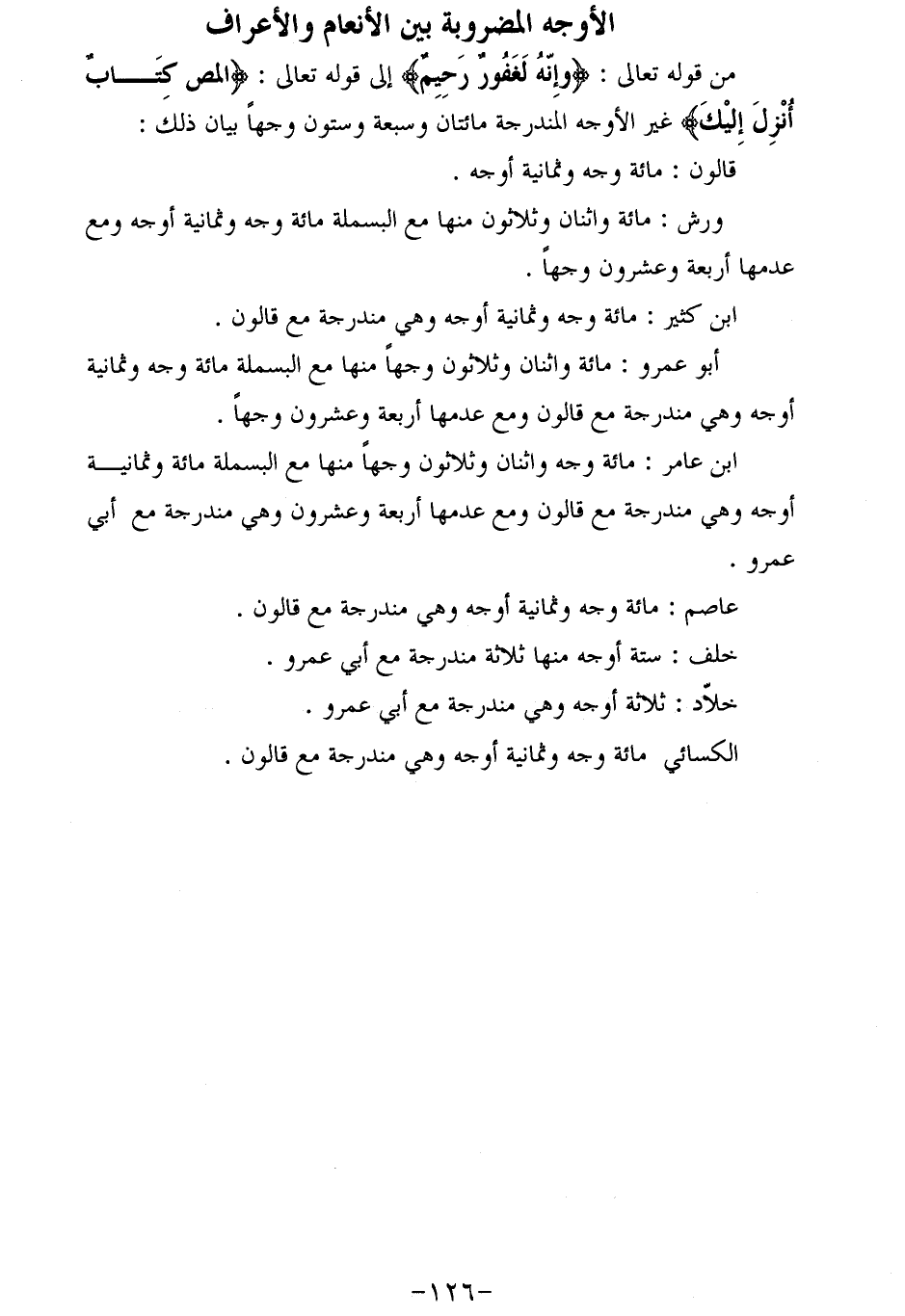 من قوله تعالى: وَإِنَّهُ لَغَفُورٌ رَحِيمٌ إلى قوله تعالى: المص كِتابٌ أُنْزِلَ إِلَيْكَ غير الأوجه المندرجة مائتان وسبعة وستون وجها بيان ذلك: