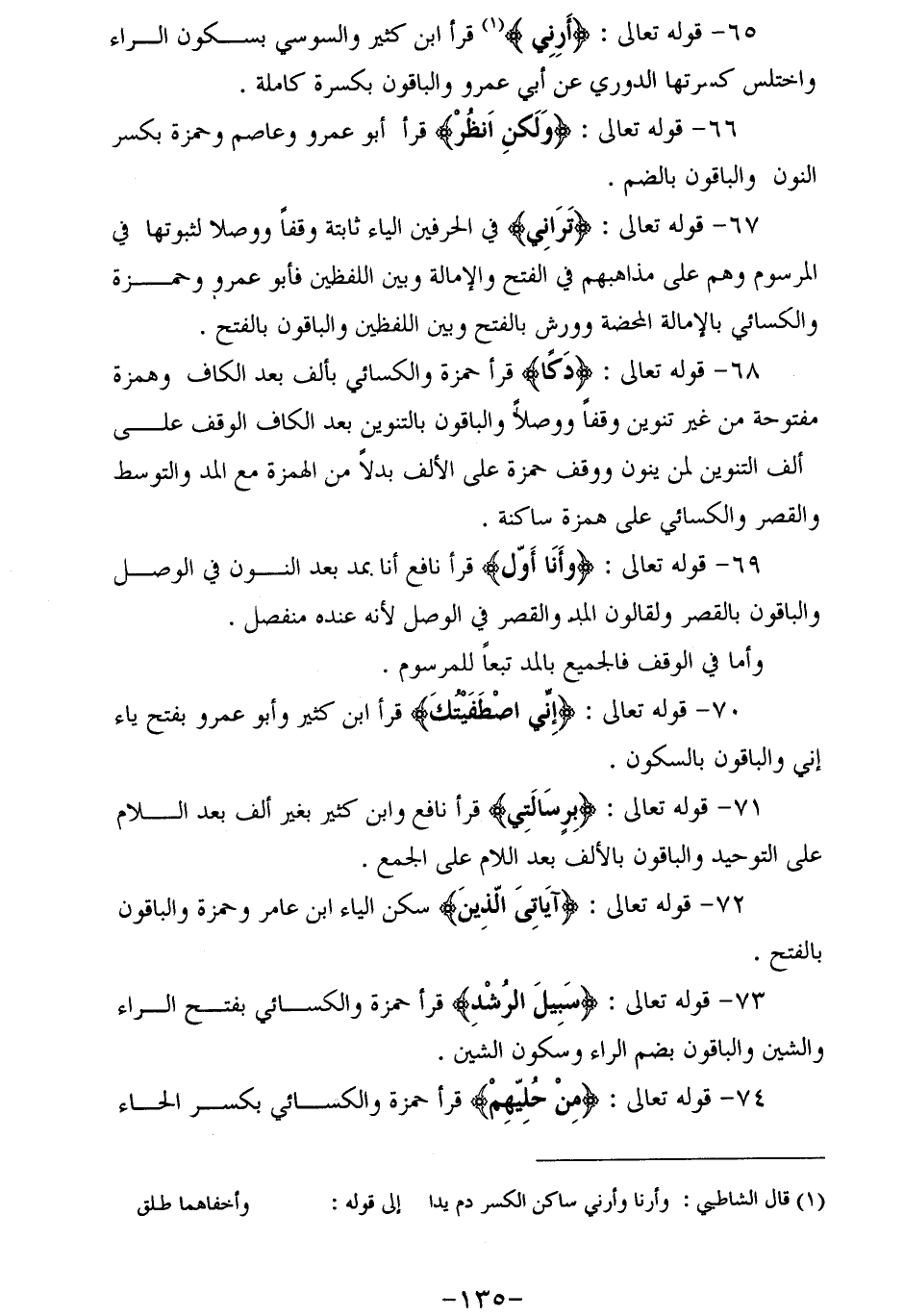 (¬1) قال الشاطبي: وأرنا وأرني ساكن الكسر دم يدا إلى قوله: وأخفاهما طلق