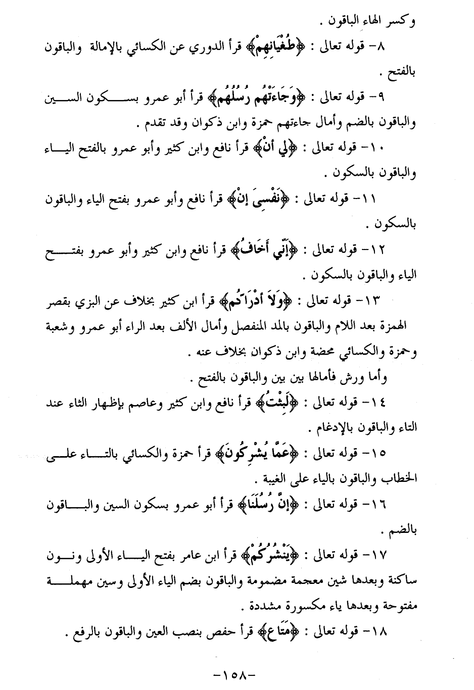 13 - قوله تعالى: وَلا أَدْراكُمْ قرأ ابن كثير بخلاف عن البزي بقصر الهمزة بعد اللام والباقون بالمد المنفصل وأمال الألف بعد الراء أبو عمرو وشعبة وحمزة والكسائي محضة وابن ذكوان بخلاف عنه.