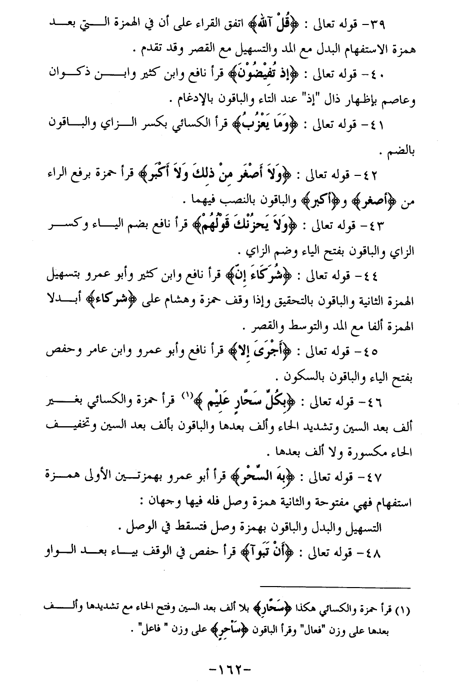 (¬1) قرأ حمزة والكسائي هكذا (سحار) بلا ألف بعد السين وفتح الحاء مع تشديدها وألف بعدها على وزن" فعال" وقرأ الباقون ساحِرٍ على وزن" فاعل".