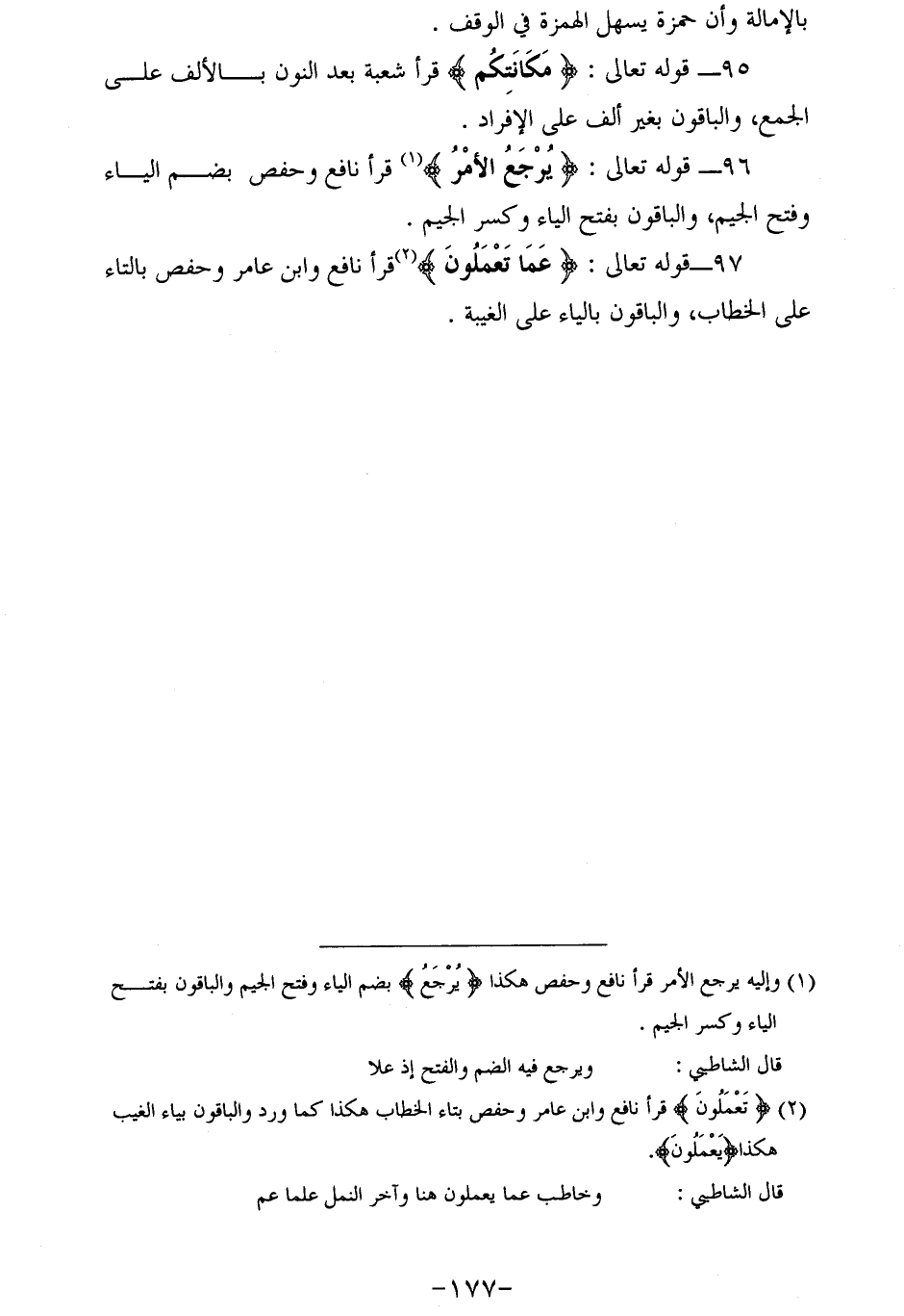 97 - قوله تعالى: عَمَّا تَعْمَلُونَ (¬2) قرأ نافع وابن عامر وحفص بالتاء على الخطاب، والباقون بالياء على الغيبة.