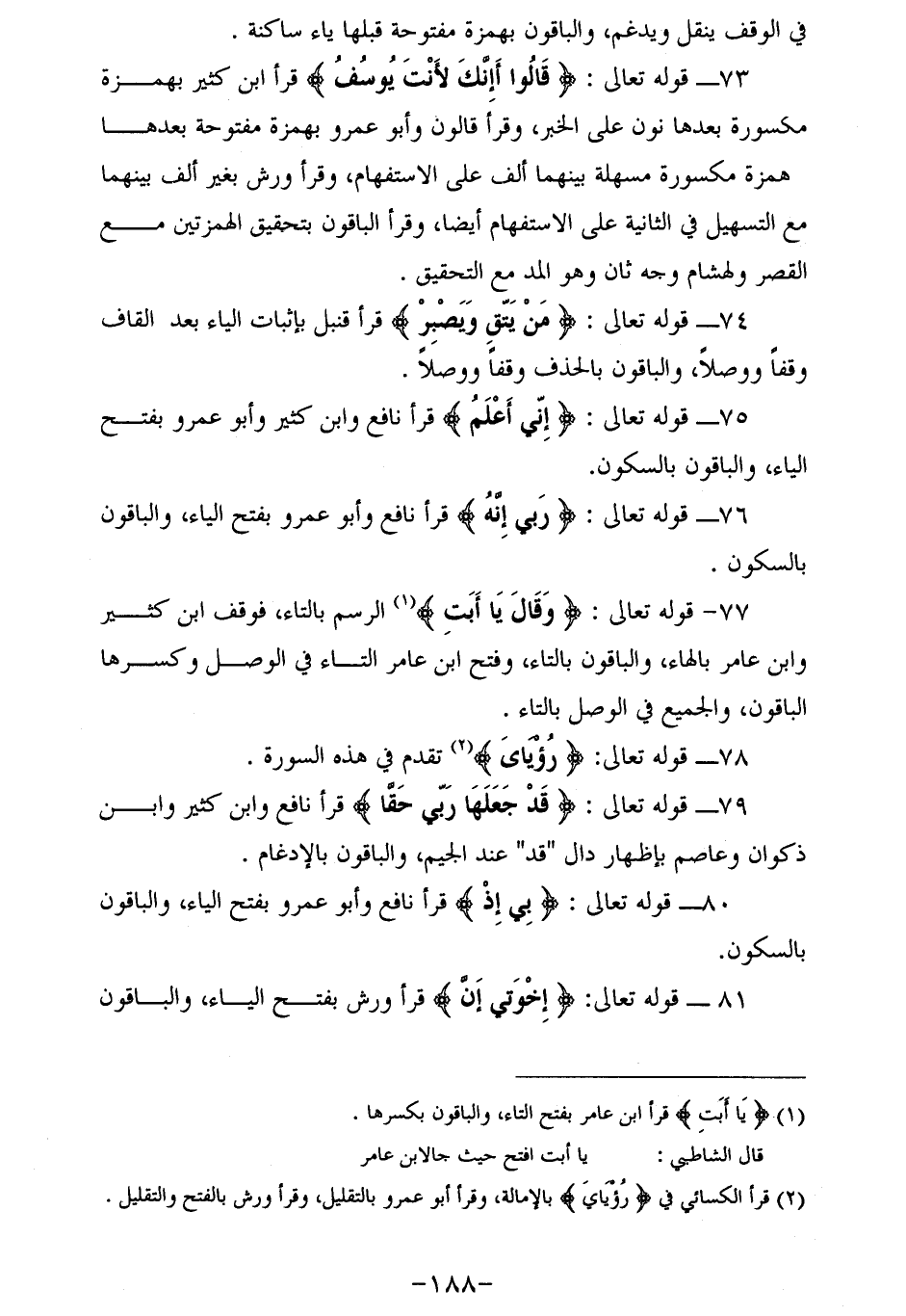 (¬1) يا أَبَتِ قرأ ابن عامر بفتح التاء، والباقون بكسرها.