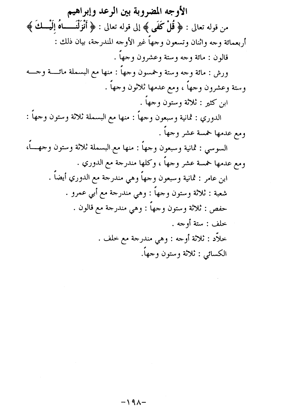 من قوله تعالى: قُلْ كَفى إلى قوله تعالى: أَنْزَلْناهُ إِلَيْكَ أربعمائة وجه واثنان وتسعون وجها غير الأوجه المندرجة، بيان ذلك: