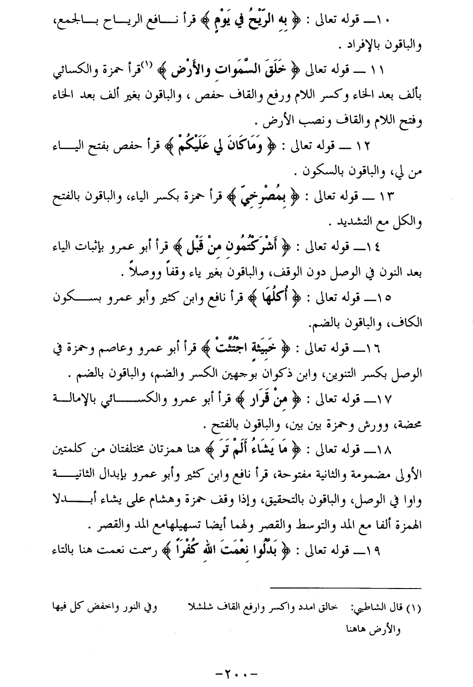 خالق امدد واكسر وارفع القاف شلشلا ... وفي النور واخفض كل فيها والأرض هاهنا
