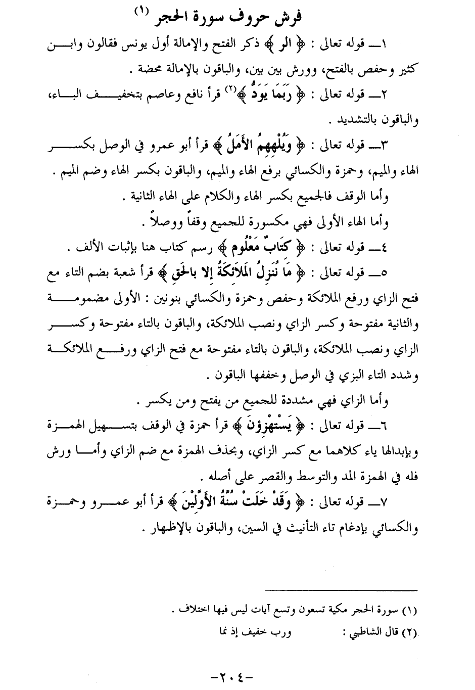 1 - قوله تعالى: الر ذكر الفتح والإمالة أول يونس فقالون وابن كثير وحفص بالفتح، وورش بين بين، والباقون بالإمالة محضة.