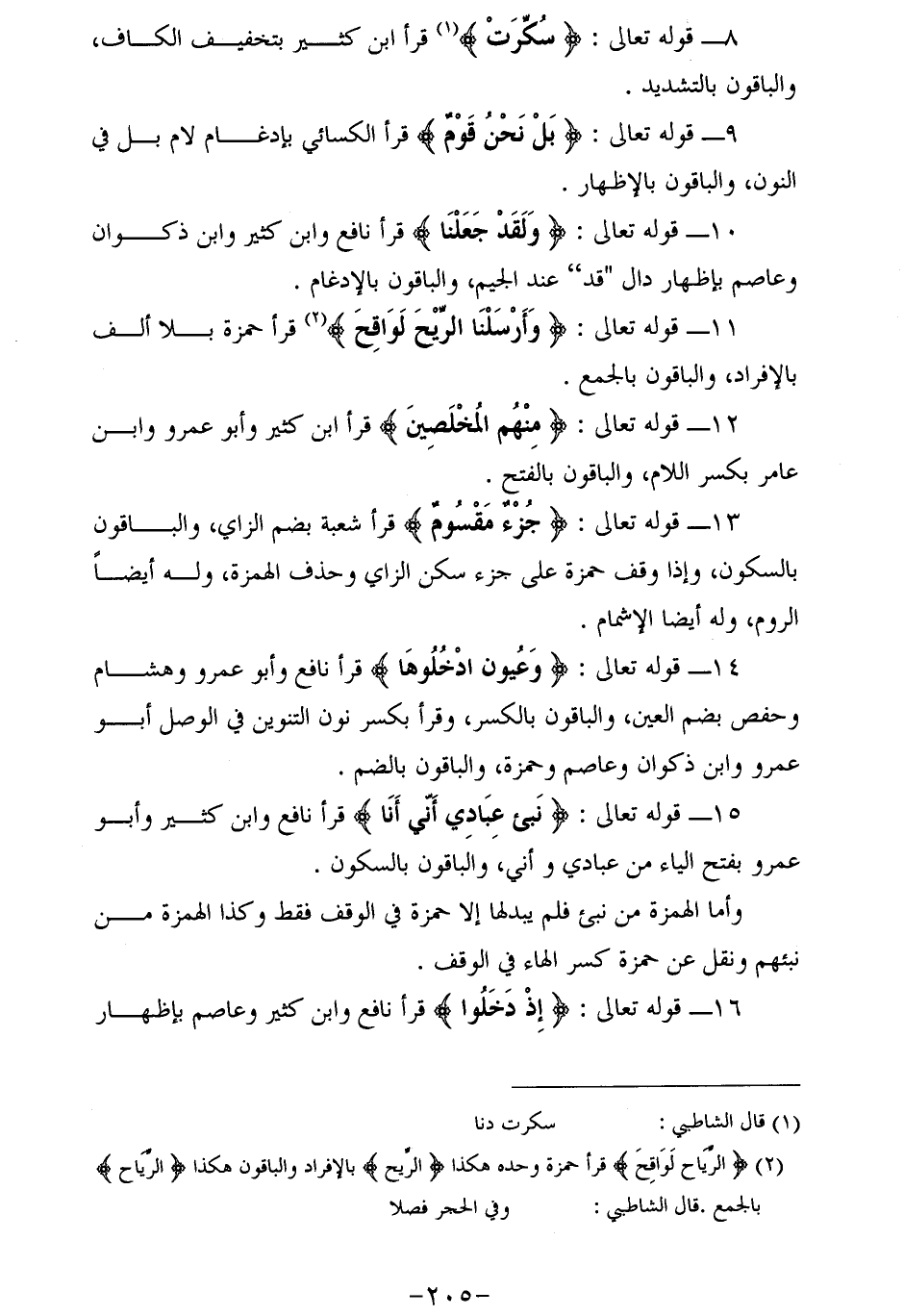 (¬2) الرِّياحَ لَواقِحَ قرأ حمزة وحده هكذا (الريح) بالإفراد والباقون هكذا الرِّياحَ بالجمع. قال الشاطبي: وفي الحجر فصلا.