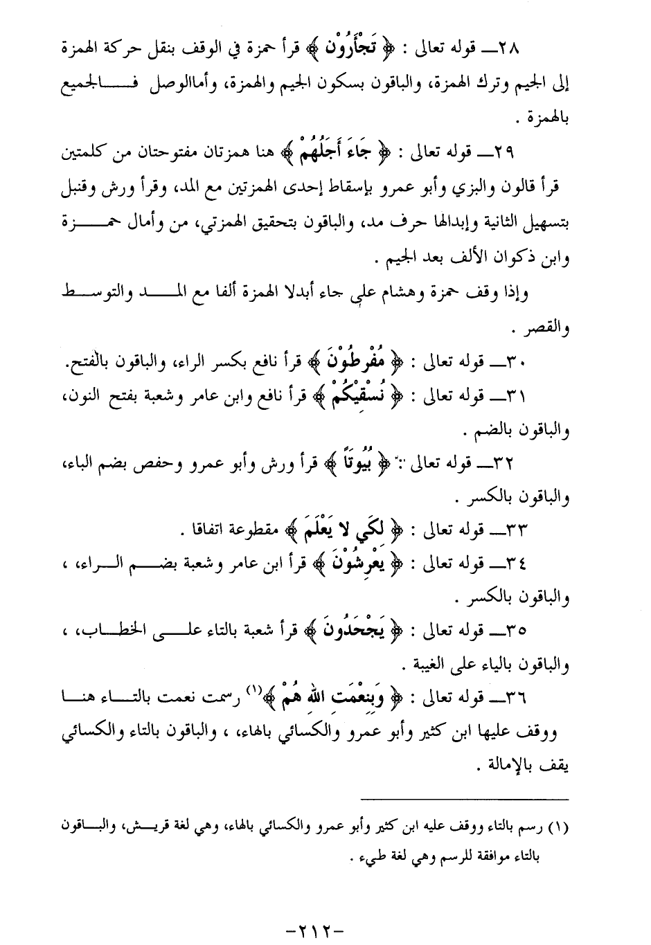 (¬1) رسم بالتاء ووقف عليه ابن كثير وأبو عمرو والكسائي بالهاء، وهي لغة قريش، والباقون بالتاء موافقة للرسم وهي لغة طيء.