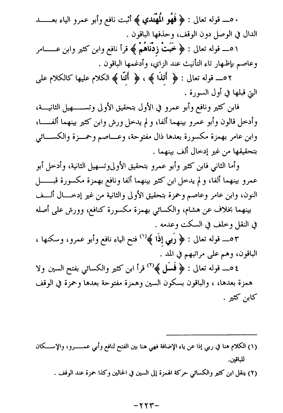 53 - قوله تعالى: رَبِّي إِذاً (¬1) فتح الياء نافع وأبو عمرو، وسكنها، الباقون، وهم على مراتبهم في المد.