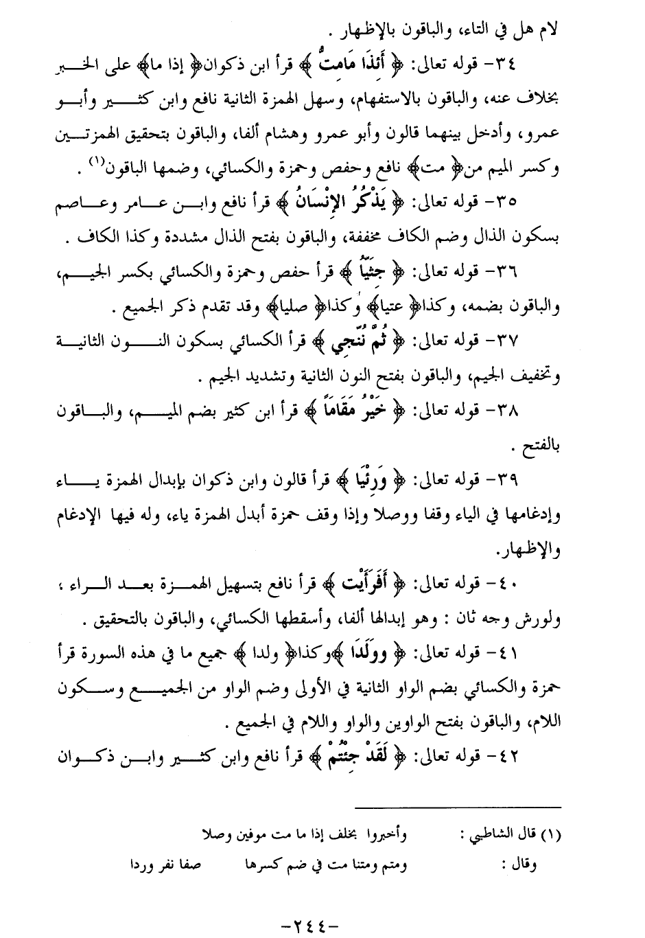 36 - قوله تعالى: جِثِيًّا قرأ حفص وحمزة والكسائي بكسر الجيم، والباقون بضمه، وكذا عِتِيًّا وكذا صِلِيًّا وقد تقدم ذكر الجميع.