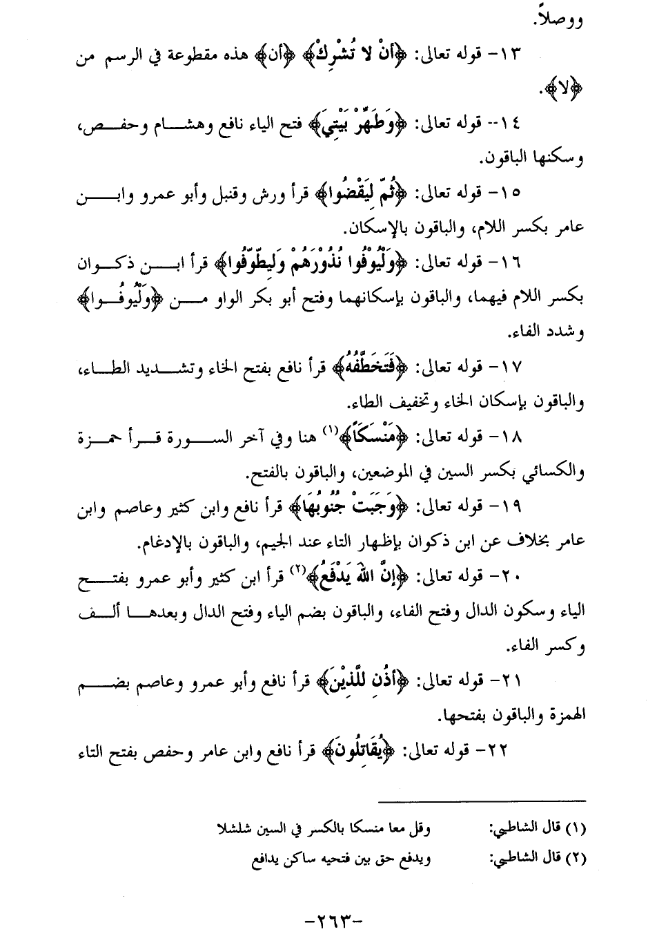 (¬1) قال الشاطبي: وقل معا منسكا بالكسر في السين شلشلا
