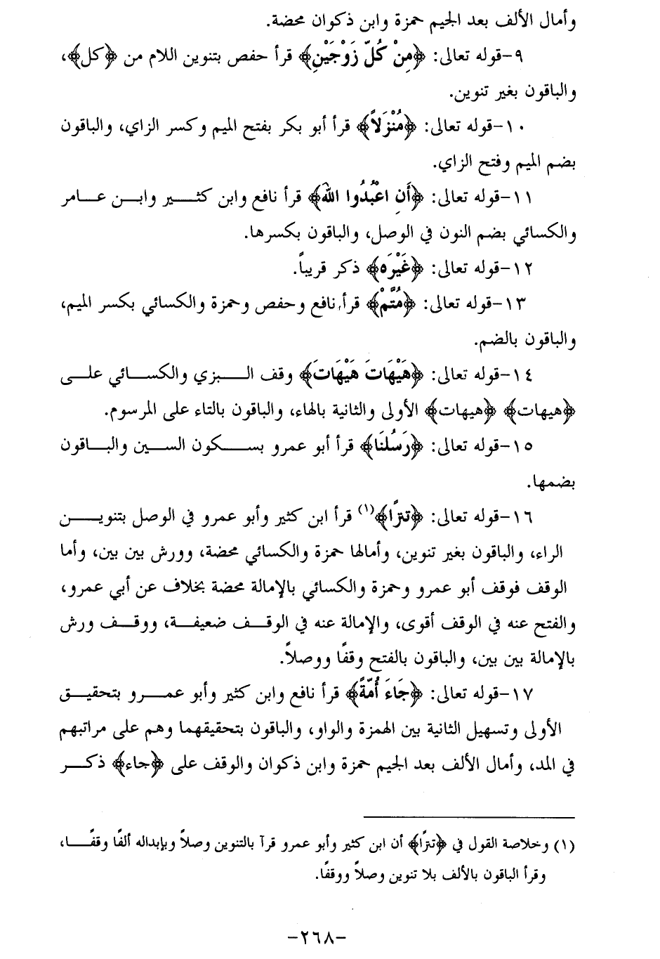 17 - قوله تعالى: جاءَ أُمَّةً قرأ نافع وابن كثير وأبو عمرو بتحقيق الأولى وتسهيل الثانية بين الهمزة والواو، والباقون بتحقيقهما وهم على مراتبهم في المد، وأمال الألف بعد الجيم حمزة وابن ذكوان والوقف على جاءَ ذكر