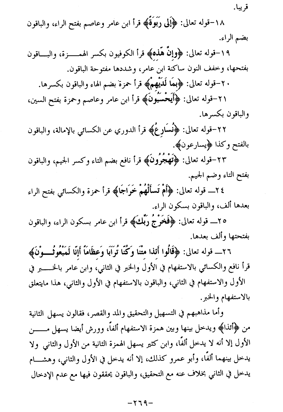 26 - قوله تعالى: قالُوا أَإِذا مِتْنا وَكُنَّا تُراباً وَعِظاماً أَإِنَّا لَمَبْعُوثُونَ قرأ نافع والكسائي بالاستفهام في الأول والخبر في الثاني، وابن عامر بالخبر في الأول والاستفهام في الثاني، والباقون بالاستفهام في الأول والثاني، هذا ما يتعلق بالاستفهام والخبر.