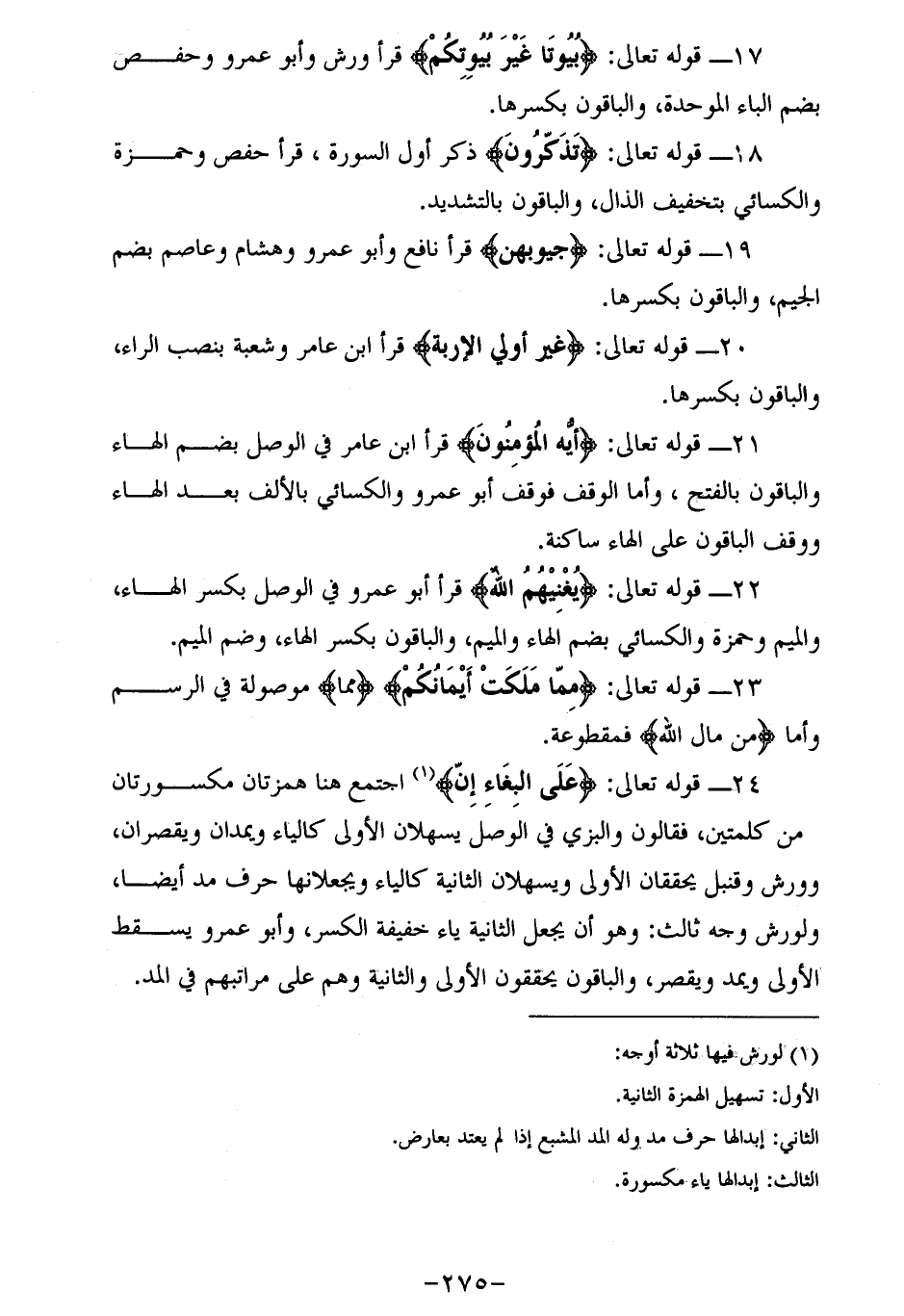 22 - قوله تعالى: يُغْنِيَهُمُ اللَّهُ قرأ أبو عمرو في الوصل بكسر الهاء، والميم وحمزة والكسائي بضم الهاء والميم، والباقون بكسر الهاء، وضم الميم.