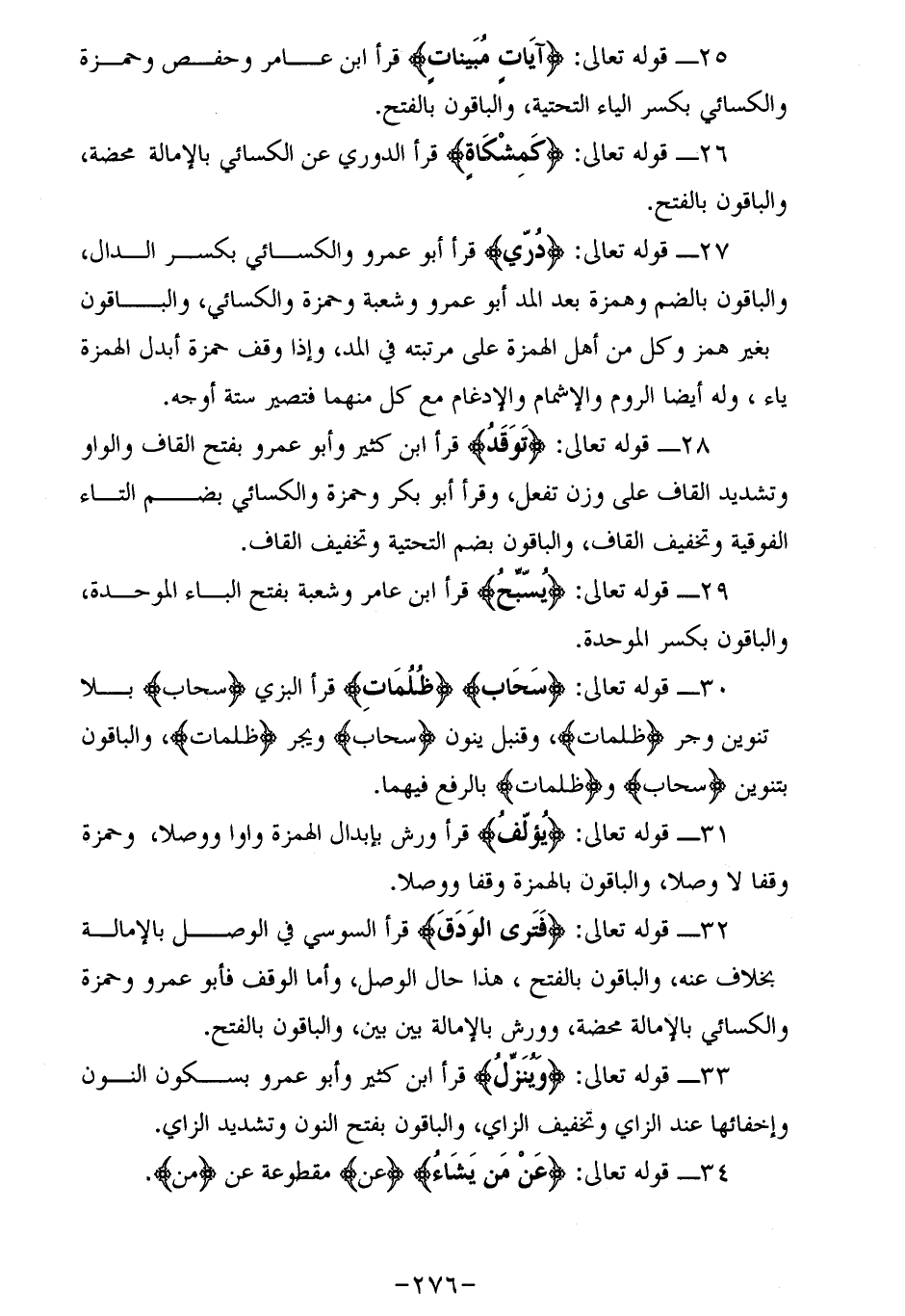 25 - قوله تعالى: آياتٍ مُبَيِّناتٍ قرأ ابن عامر وحفص وحمزة والكسائي بكسر الياء التحتية، والباقون بالفتح.