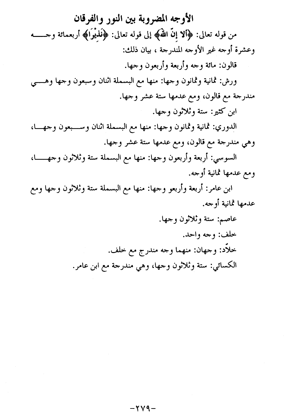 من قوله تعالى: أَلا إِنَّ اللَّهَ إلى قوله تعالى: نَذِيراً أربعمائة وجه وعشرة أوجه غير الأوجه المندرجة، بيان ذلك: