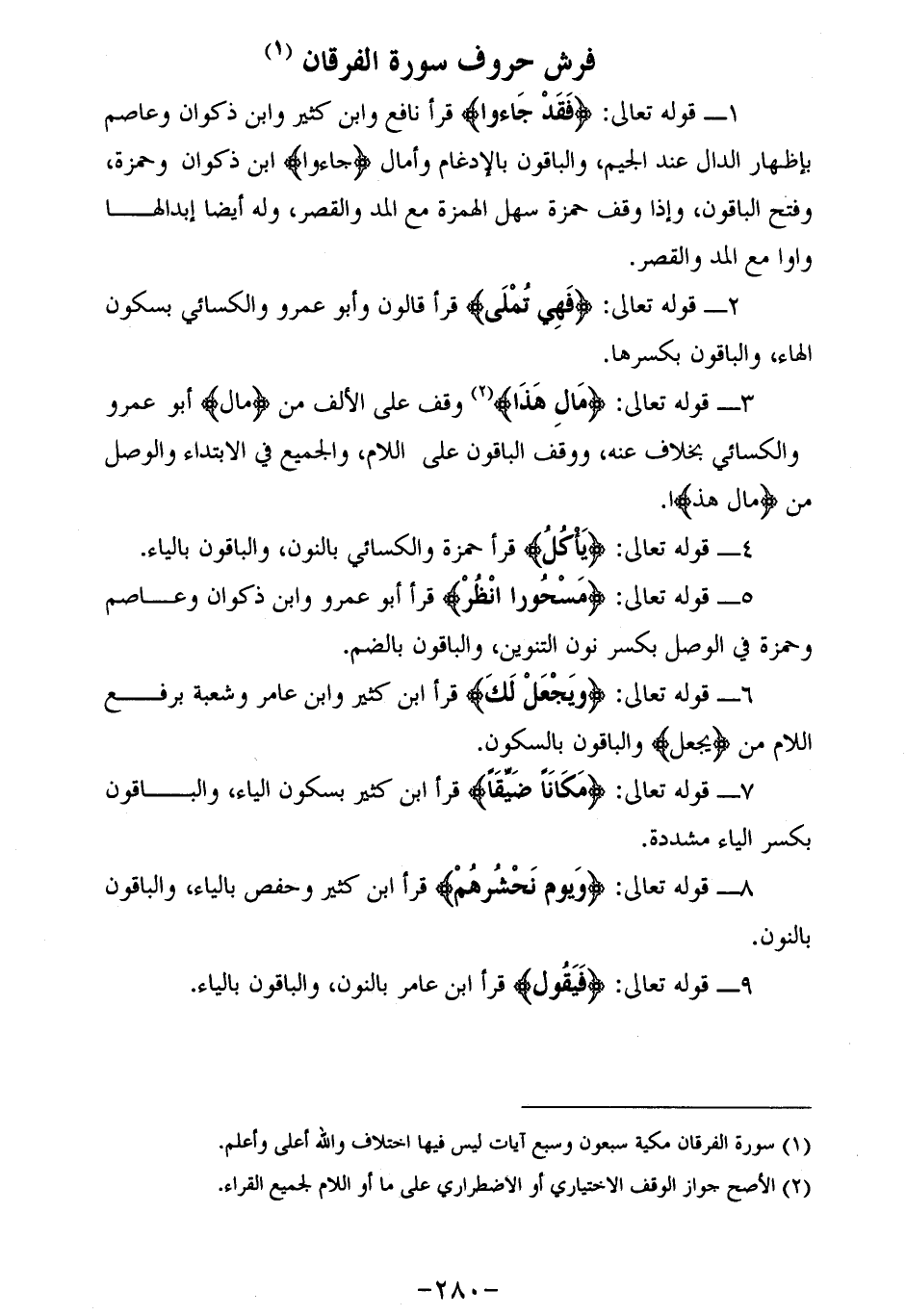 فرش حروف سورة الفرقان (¬1)