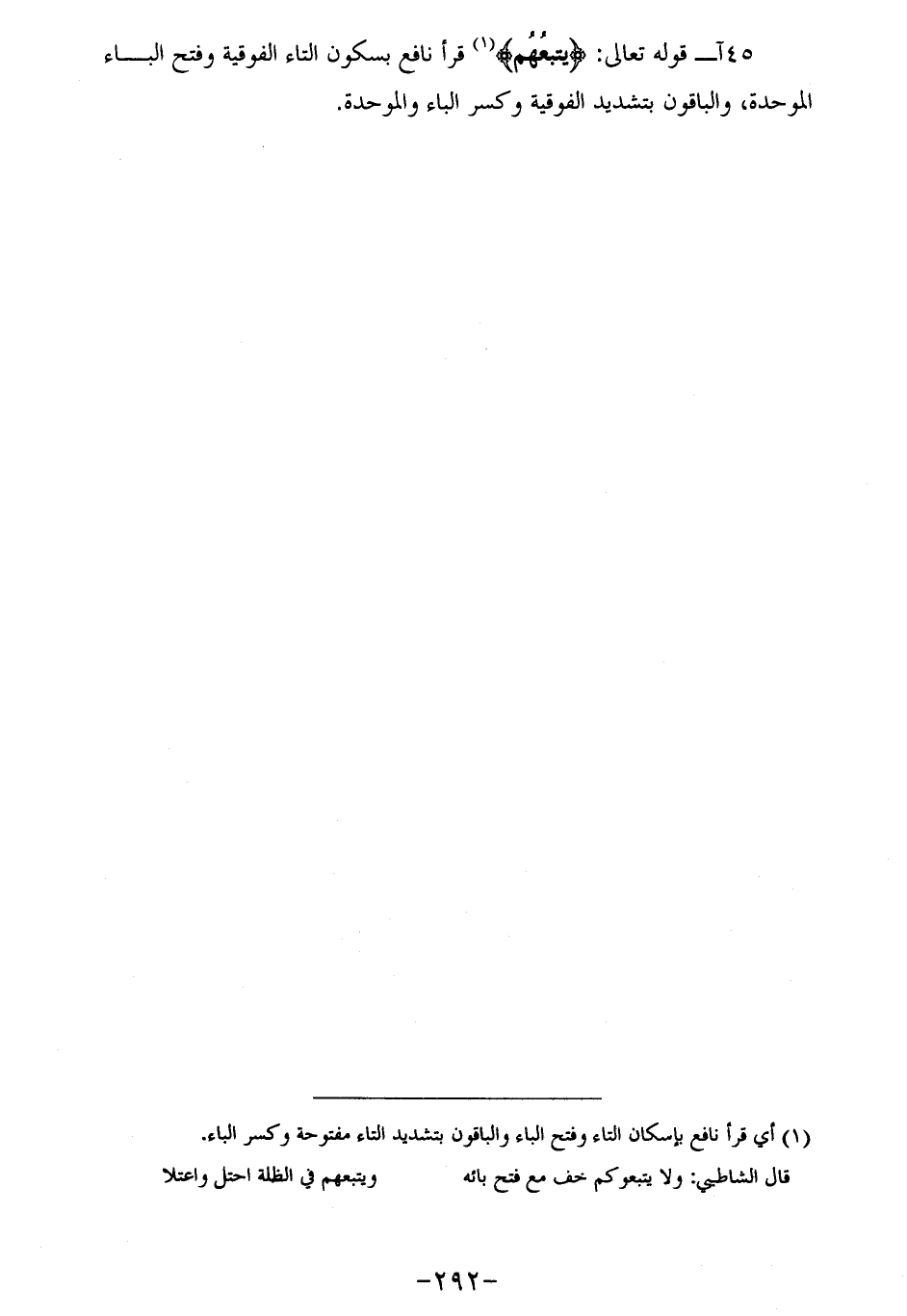 45 - قوله تعالى: يَتَّبِعُهُمُ (¬1) قرأ نافع بسكون التاء الفوقية وفتح الباء الموحدة، والباقون بتشديد الفوقية وكسر الباء والموحدة.