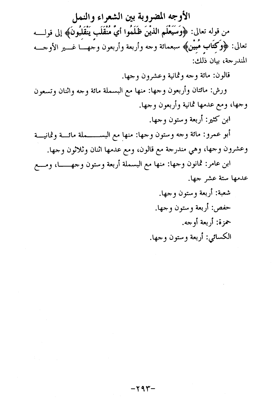 من قوله تعالى: وَسَيَعْلَمُ الَّذِينَ ظَلَمُوا أَيَّ مُنْقَلَبٍ يَنْقَلِبُونَ إلى قوله تعالى: وَكِتابٍ مُبِينٍ سبعمائة وجه وأربعة وأربعون وجها غير الأوجه المندرجة، بيان ذلك: