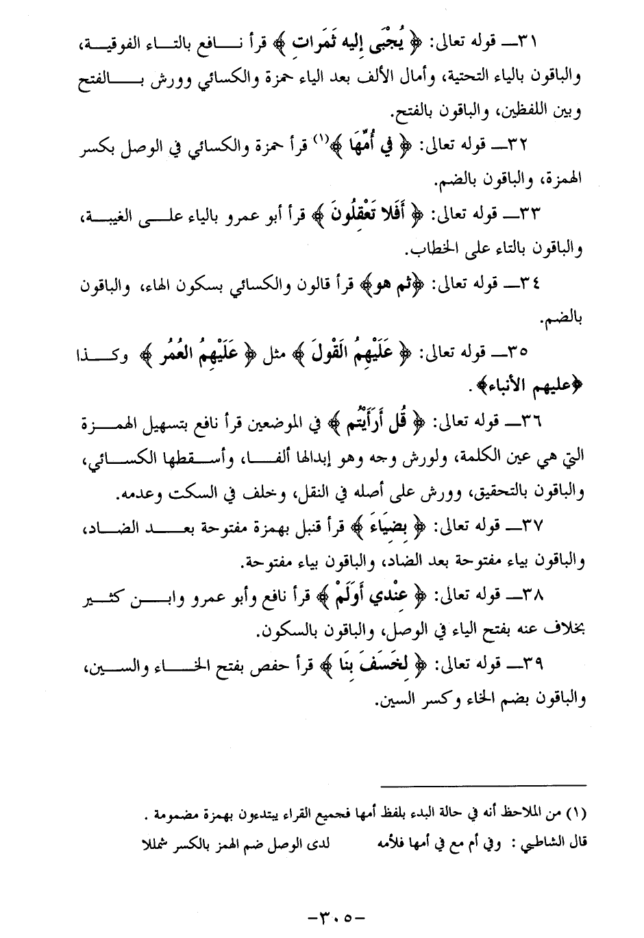 (¬1) من الملاحظ أنه في حالة البدء بلفظ أمها فجميع القراء يبتدءون بهمزة مضمومة.