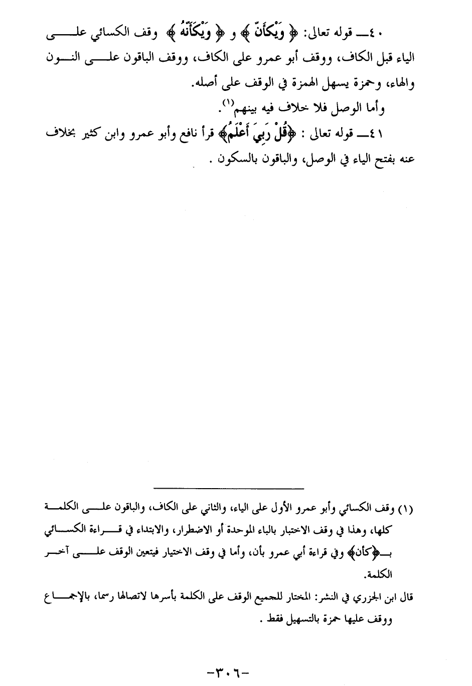 (¬1) وقف الكسائي وأبو عمرو الأول على الياء، والثاني على الكاف، والباقون على الكلمة كلها، وهذا في وقف الاختبار بالباء الموحدة أو الاضطرار، والابتداء في قراءة الكسائي ب (كأن) وفي قراءة أبي عمرو بأن، وأما في وقف الاختيار فيتعين الوقف على آخر الكلمة.