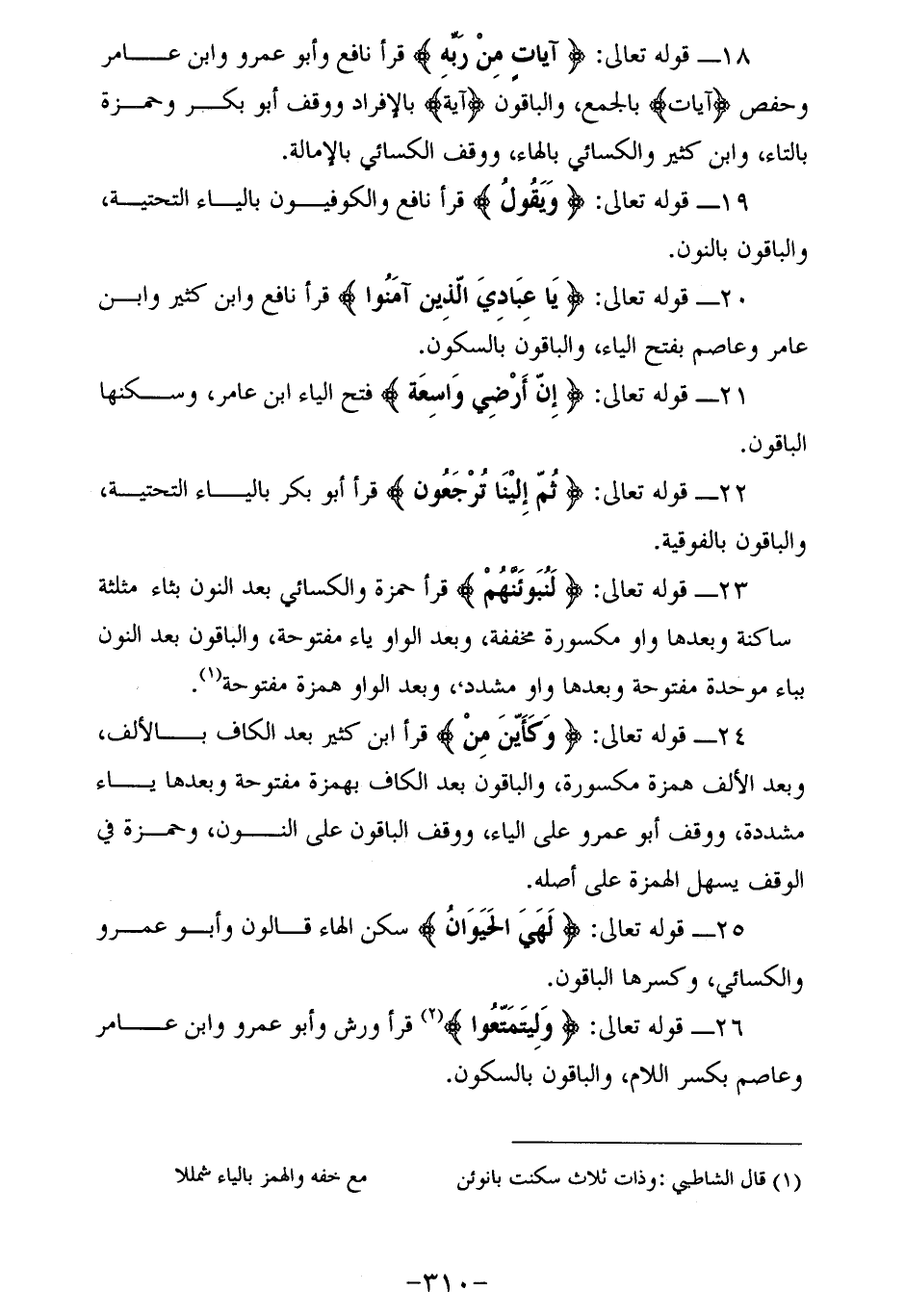 23 - قوله تعالى: لَنُبَوِّئَنَّهُمْ قرأ حمزة والكسائي بعد النون بثاء مثلثة ساكنة وبعدها واو مكسورة مخففة، وبعد الواو ياء مفتوحة، والباقون بعد النون بباء موحدة مفتوحة وبعدها واو مشدد، وبعد الواو همزة مفتوحة (¬1).