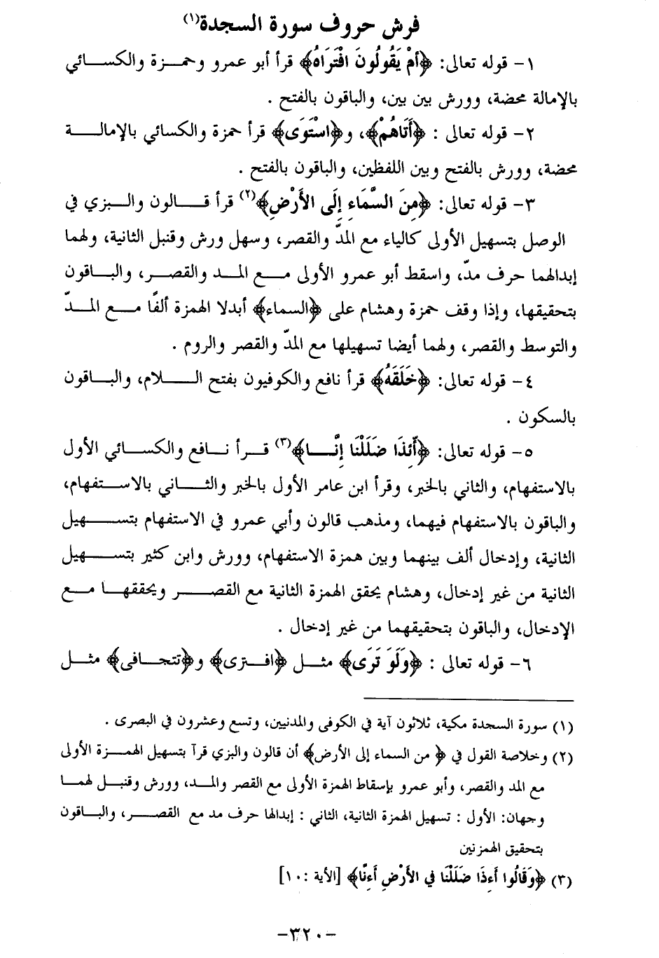 1 - قوله تعالى: أَمْ يَقُولُونَ افْتَراهُ قرأ أبو عمرو وحمزة والكسائي بالإمالة محضة، وورش بين بين، والباقون بالفتح.