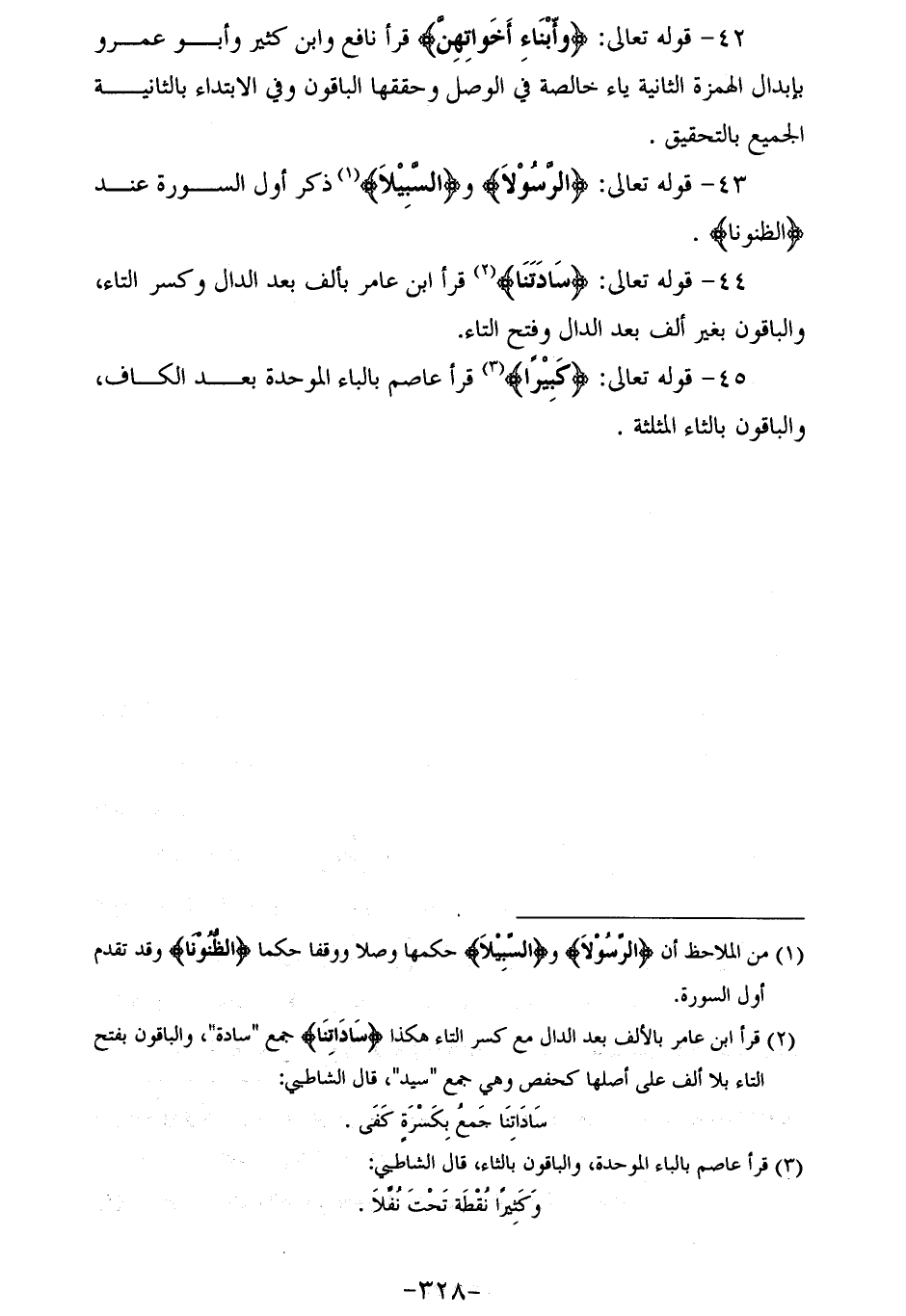 43 - قوله تعالى: الرَّسُولَا والسَّبِيلَا (¬1) ذكر أول السورة عند الظُّنُونَا.