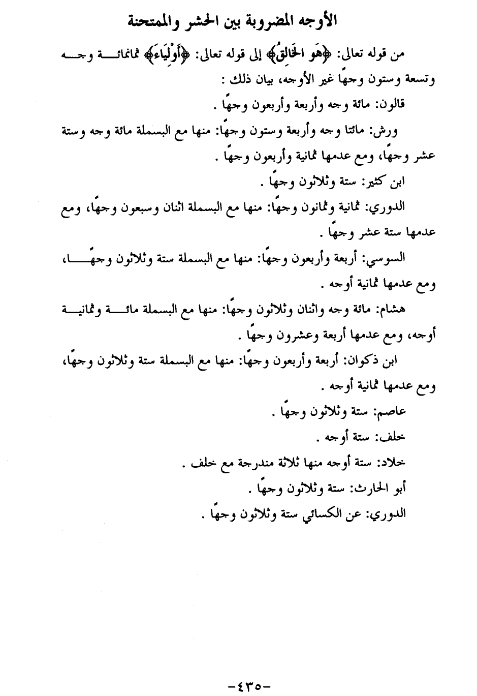 قالون: مائة وجه وأربعة وأربعون وجها.