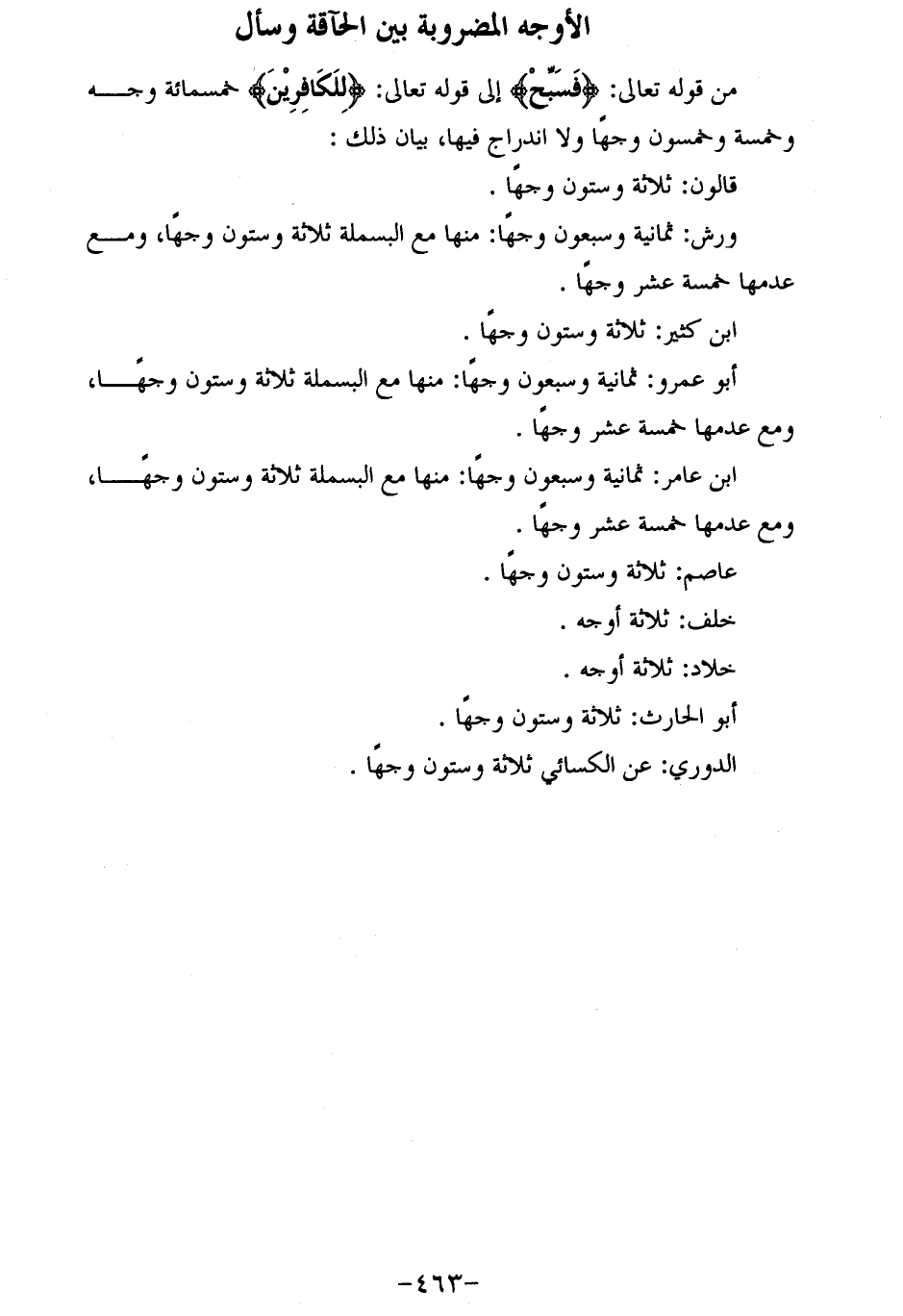 من قوله تعالى: فَسَبِّحْ إلى قوله تعالى: لِلْكافِرينَ خمسمائة وجه وخمسة وخمسون وجها ولا اندراج فيها، بيان ذلك: