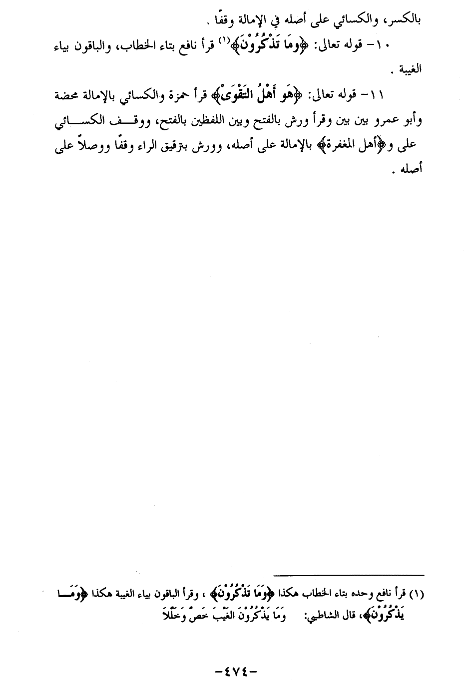 (¬1) قرأ نافع وحده بتاء الخطاب هكذا (وما تذكرون)، وقرأ الباقون بياء الغيبة هكذا وَما يَذْكُرُونَ، قال الشاطبي: وما يذكرون الغيب خصّ وخلّلا