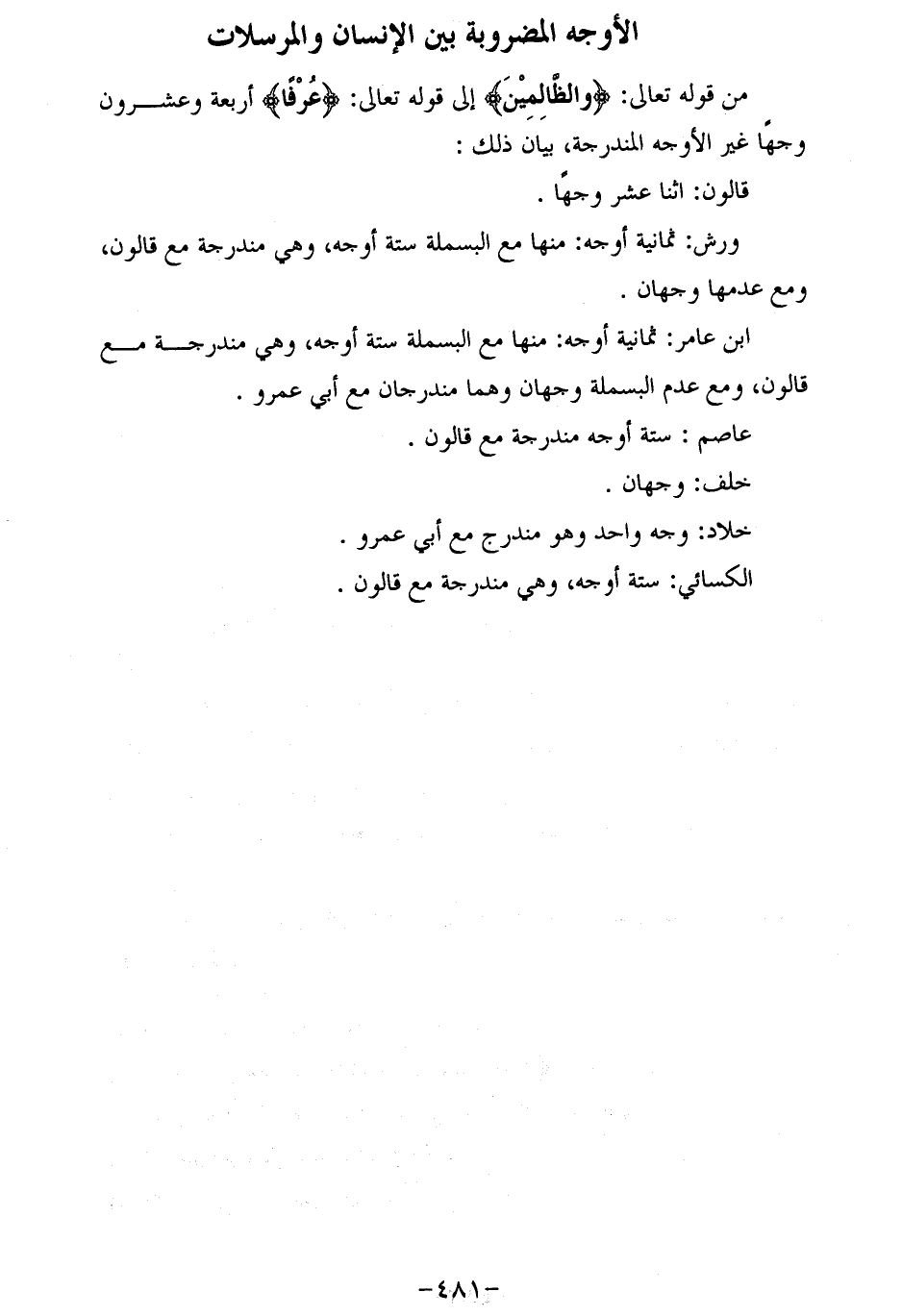 من قوله تعالى: وَالظَّالِمِينَ إلى قوله تعالى: عُرْفاً أربعة وعشرون وجها غير الأوجه المندرجة، بيان ذلك: