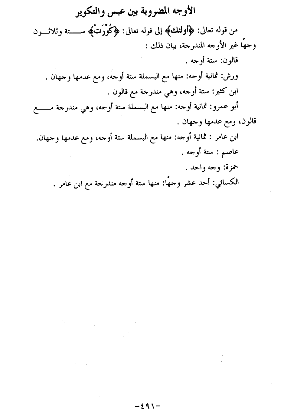 من قوله تعالى: أُولئِكَ إلى قوله تعالى: كُوِّرَتْ ستة وثلاثون وجها غير الأوجه المندرجة، بيان ذلك: