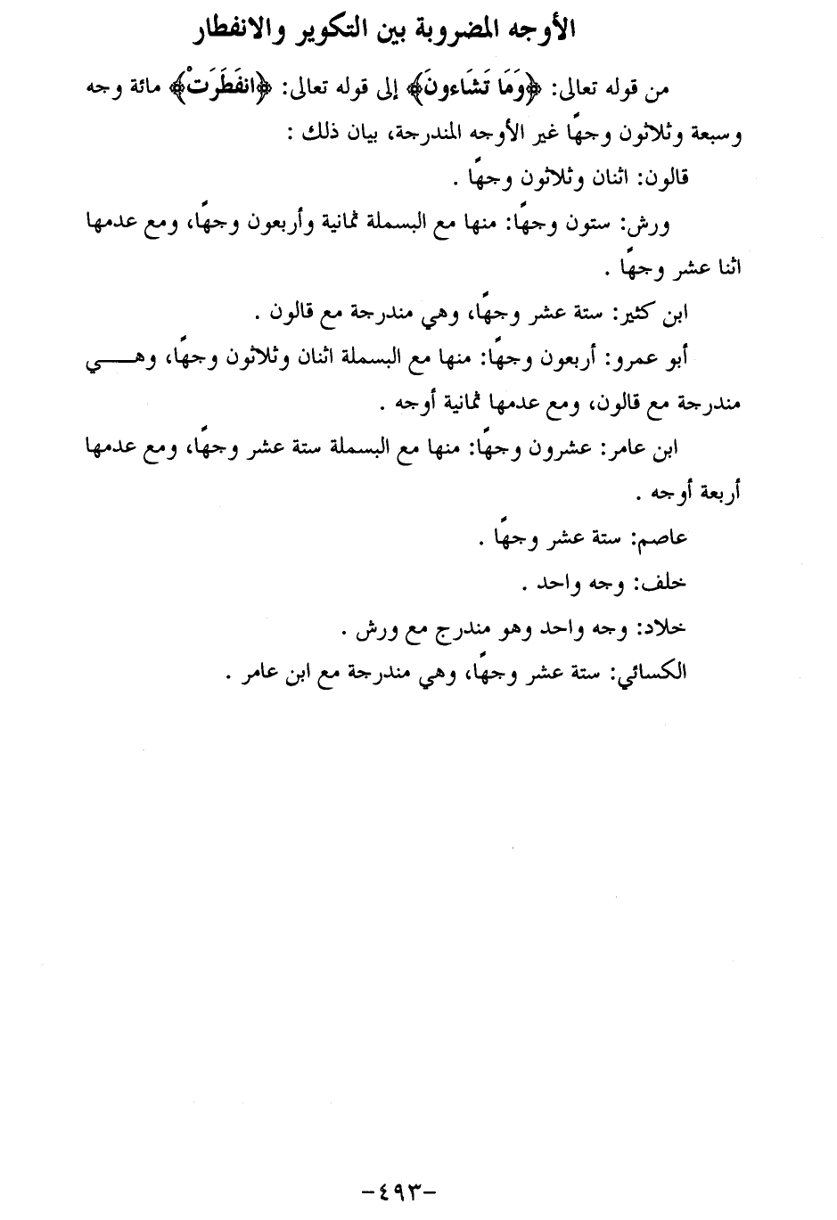 من قوله تعالى: وَما تَشاؤُنَ إلى قوله تعالى: انْفَطَرَتْ مائة وجه وسبعة وثلاثون وجها غير الأوجه المندرجة، بيان ذلك: