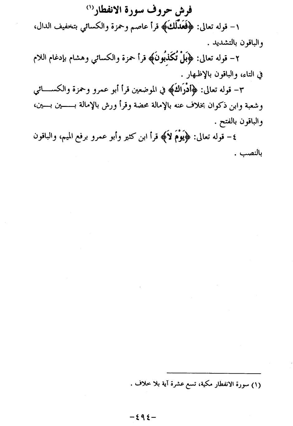 1 - قوله تعالى: فَعَدَلَكَ قرأ عاصم وحمزة والكسائي بتخفيف الدال، والباقون بالتشديد.