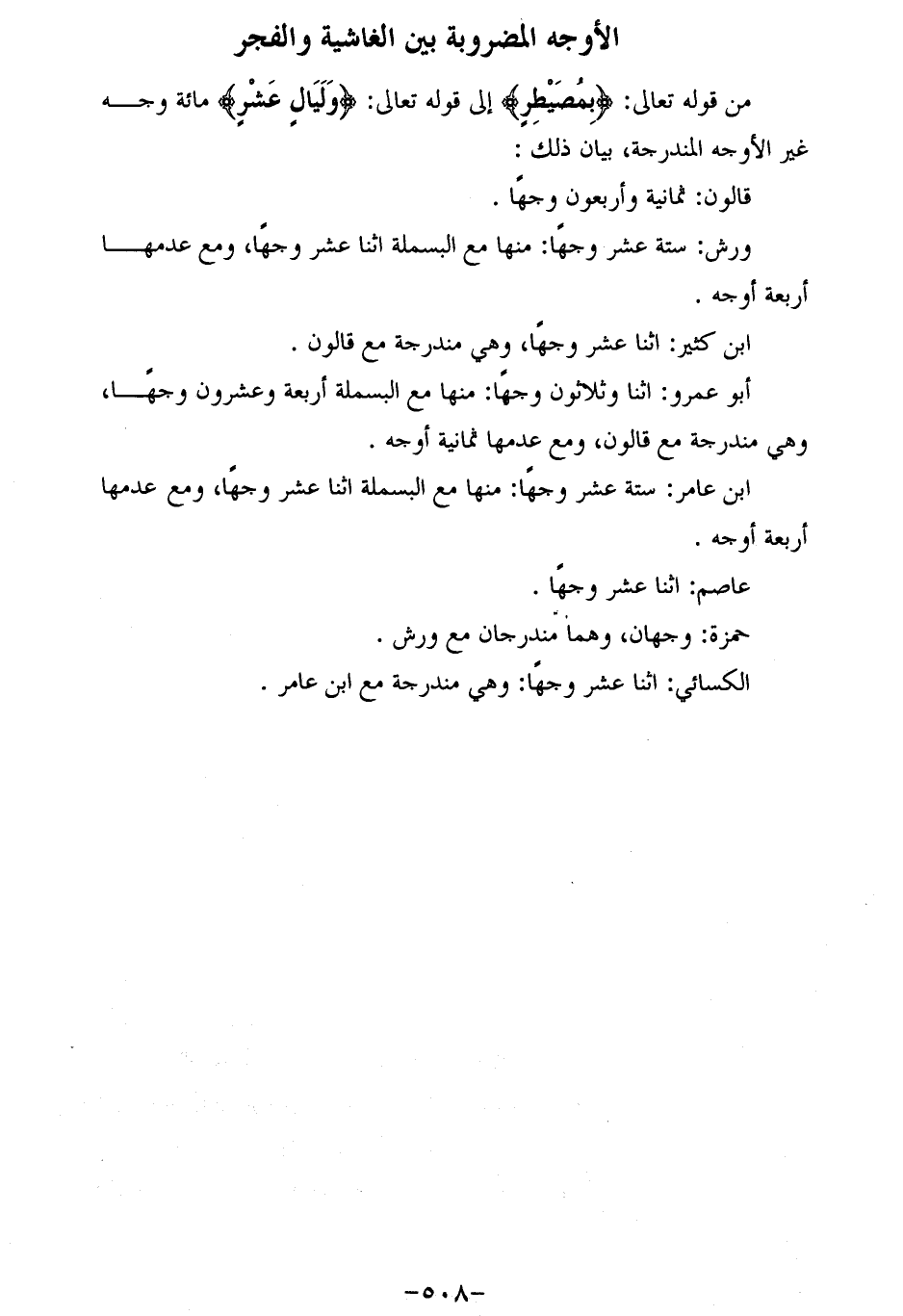 من قوله تعالى: بِمُصَيْطِرٍ إلى قوله تعالى: وَلَيالٍ عَشْرٍ مائة وجه غير الأوجه المندرجة، بيان ذلك: