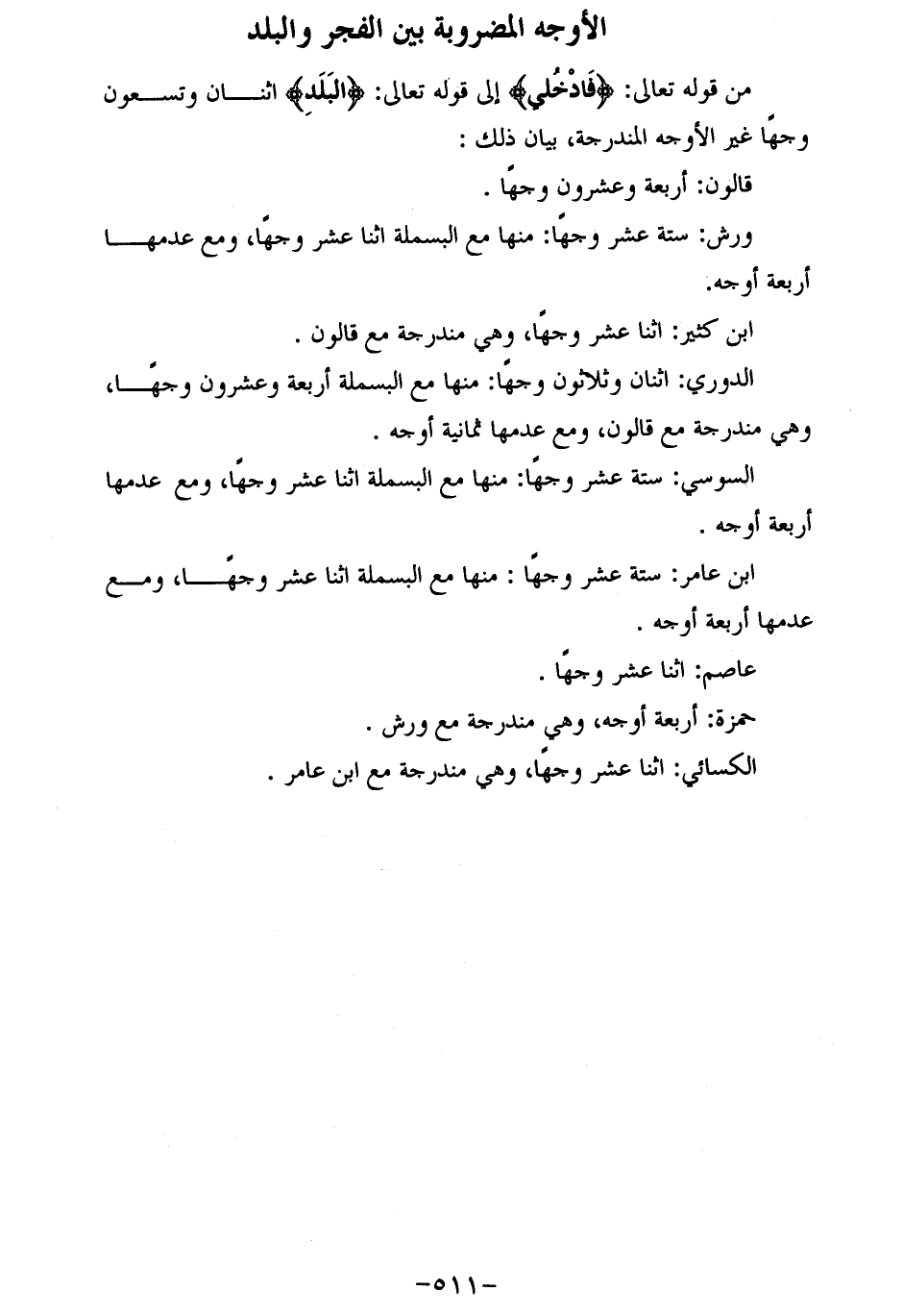 من قوله تعالى: فَادْخُلِي إلى قوله تعالى: الْبَلَدِ اثنان وتسعون وجها غير الأوجه المندرجة، بيان ذلك: