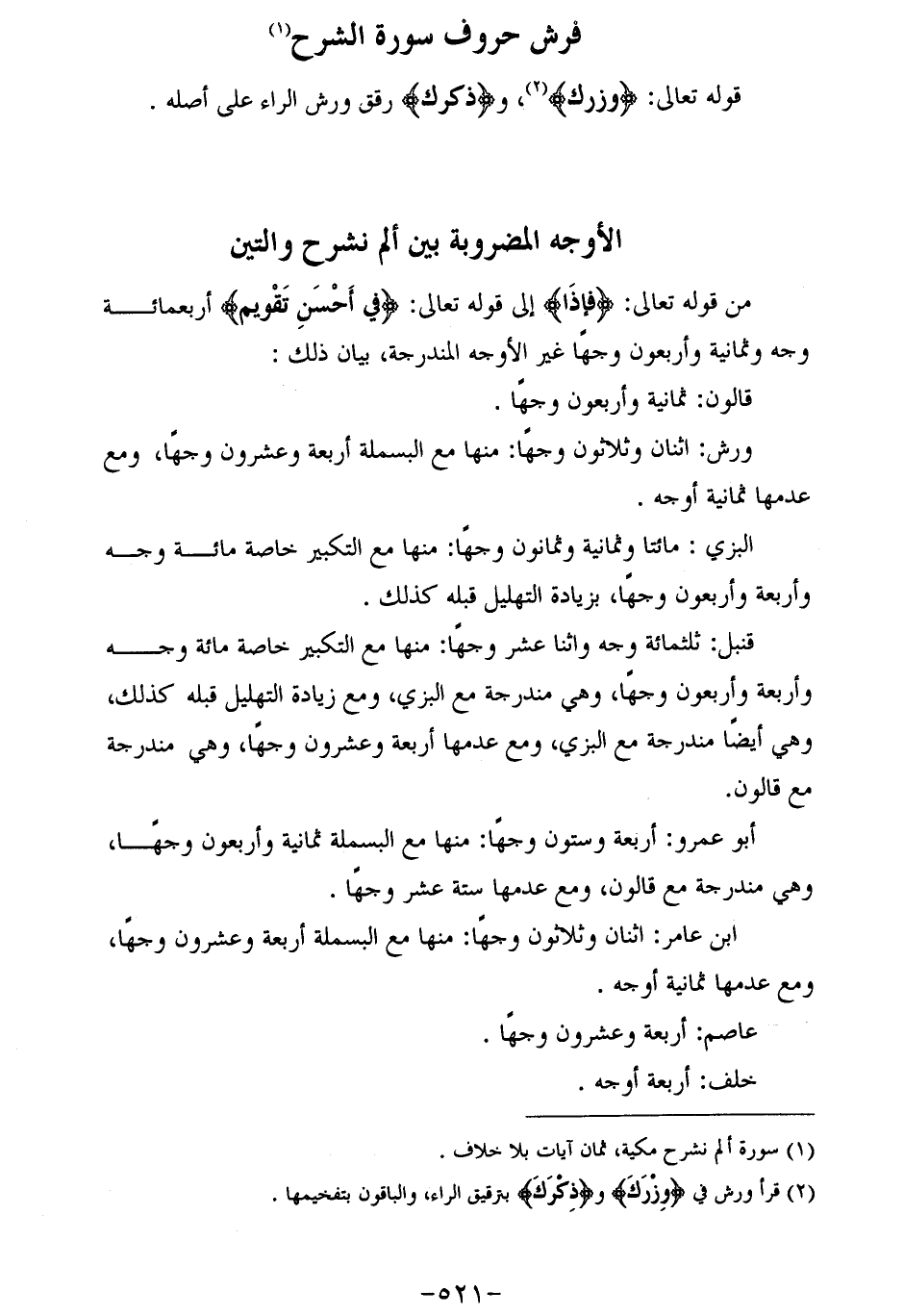 فرش حروف سورة الشرح (¬1)