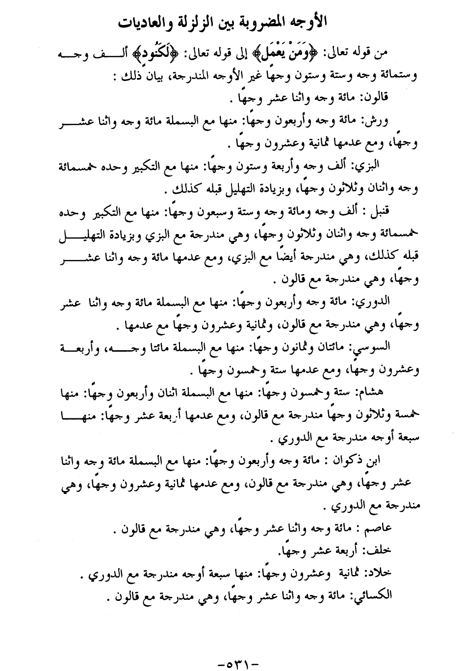 الكسائي: مائة وجه واثنا عشر وجها، وهي مندرجة مع قالون.