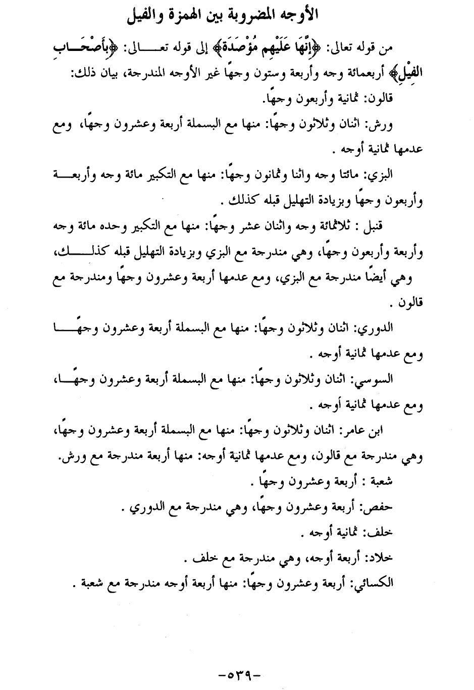 الدوري: اثنان وثلاثون وجها: منها مع البسملة أربعة وعشرون وجها ومع عدمها ثمانية أوجه.