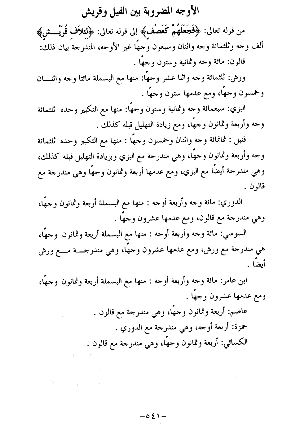 من قوله تعالى: فَجَعَلَهُمْ كَعَصْفٍ إلى قوله تعالى: (لإيلاف قريش) ألف وجه وثلاثمائة وجه واثنان وسبعون وجها غير الأوجه، المندرجة بيان ذلك: